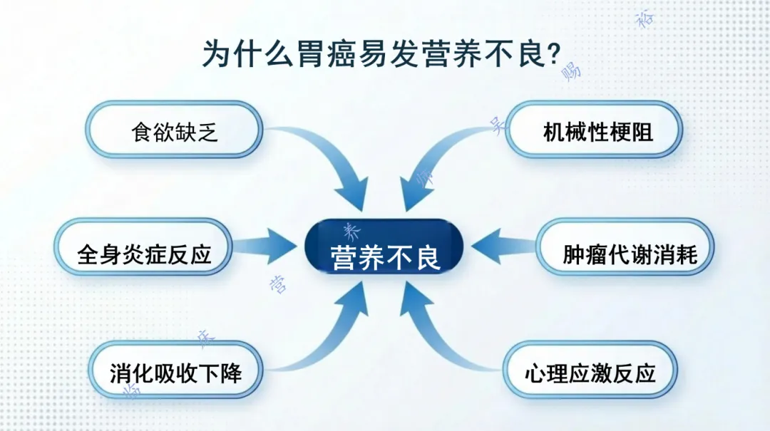 3、放化疗导致的放射性炎症、恶心、呕吐等消化道反应致摄入、吸收和消化障碍。