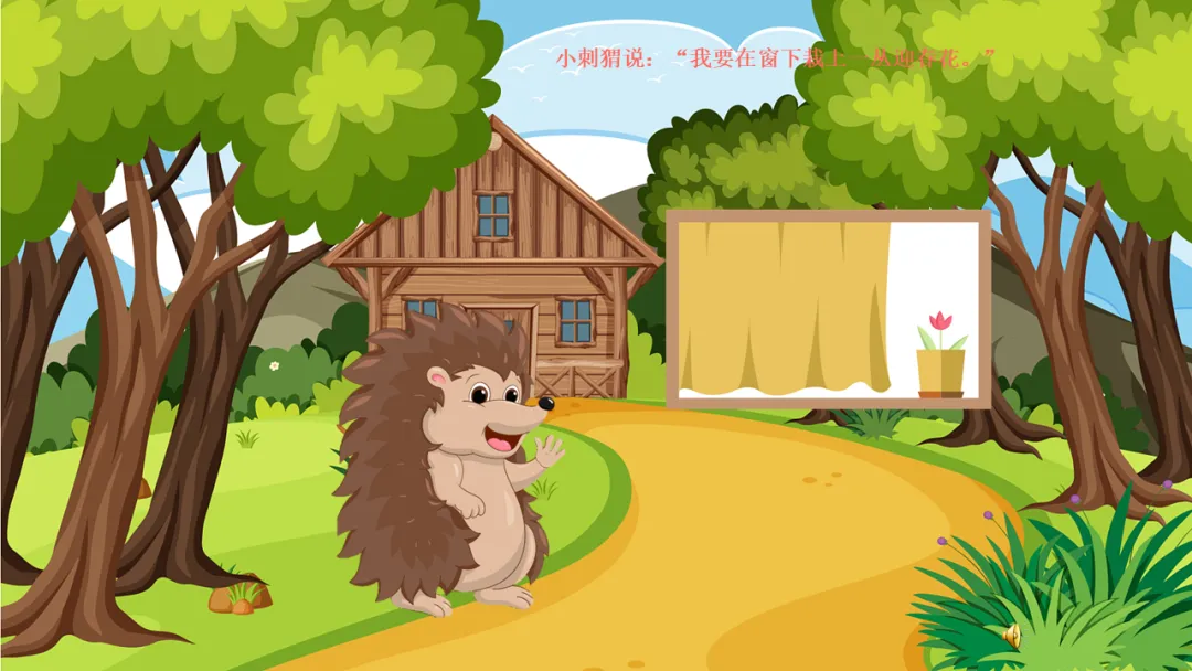 猬和小狐狸的简单对话,学习使用"一排、一片、一丛、松土、