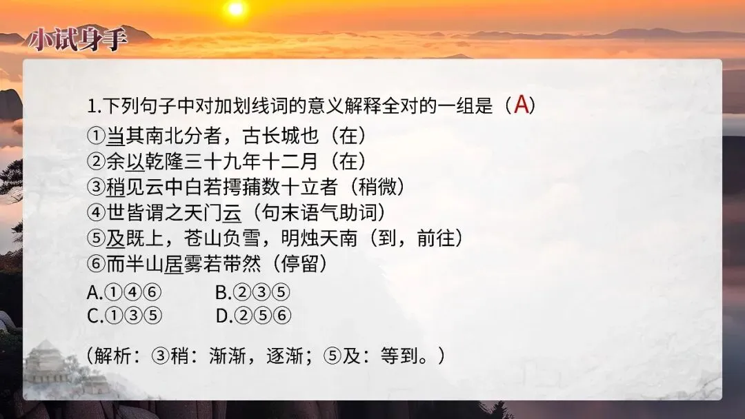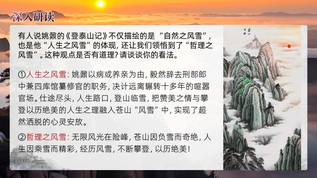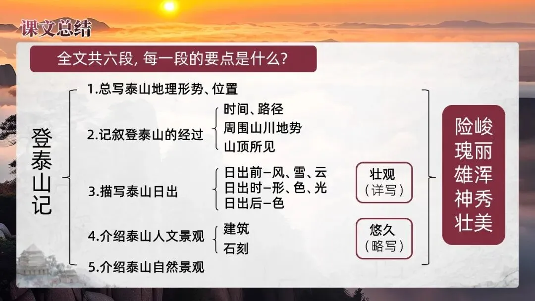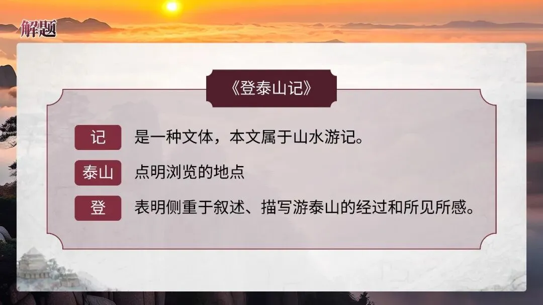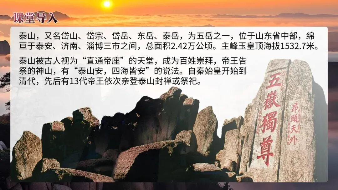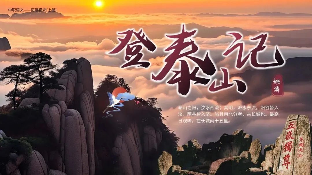 本期更新的课件为统编高教社版中职语文拓展模块上册第五单元《登泰山记》,课件共56页。