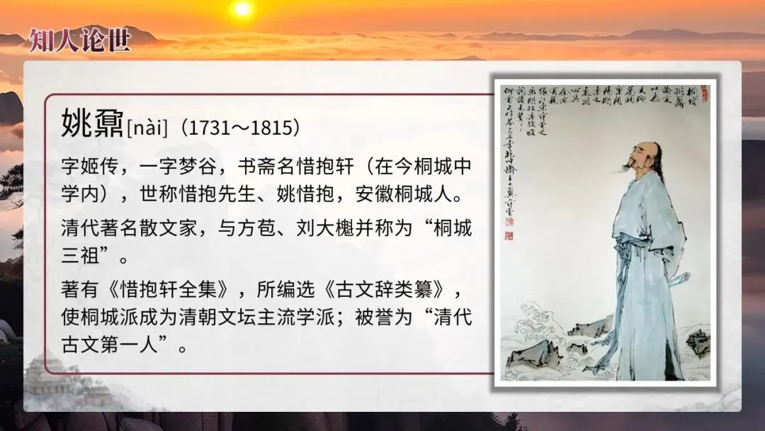 本文是清代姚鼐的散文名篇。文章记述作者冬日登临泰山的经过,以简洁雅洁的笔触描绘泰山雄伟壮丽的景象:苍山负雪、明烛天南、云海日出,于风雪弥漫中见奇绝。全文融考证于写景,结构谨严,语言洗练,"及既上,苍山负雪,明烛天南"等句凝练传神,体现了桐城派"义理、考据、辞章"合一的文学主张,是清代山水游记的典范之作。