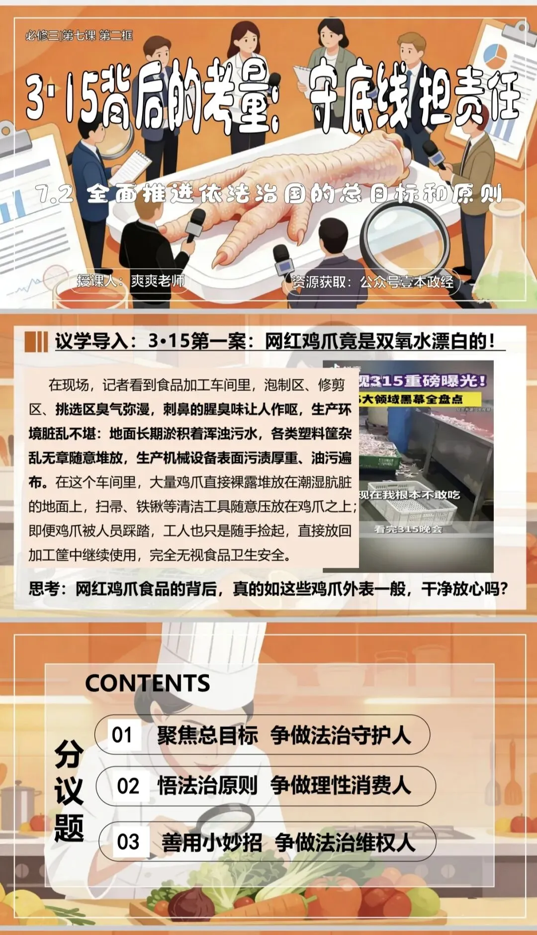 >优质课课件|2026高中政治必修三7.2推进依法治国的总目标和原则PPT+教学设计(315背后的考量:担责任 守底线,2026年最新)