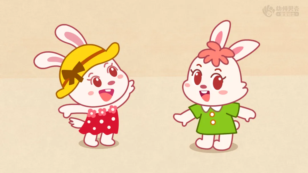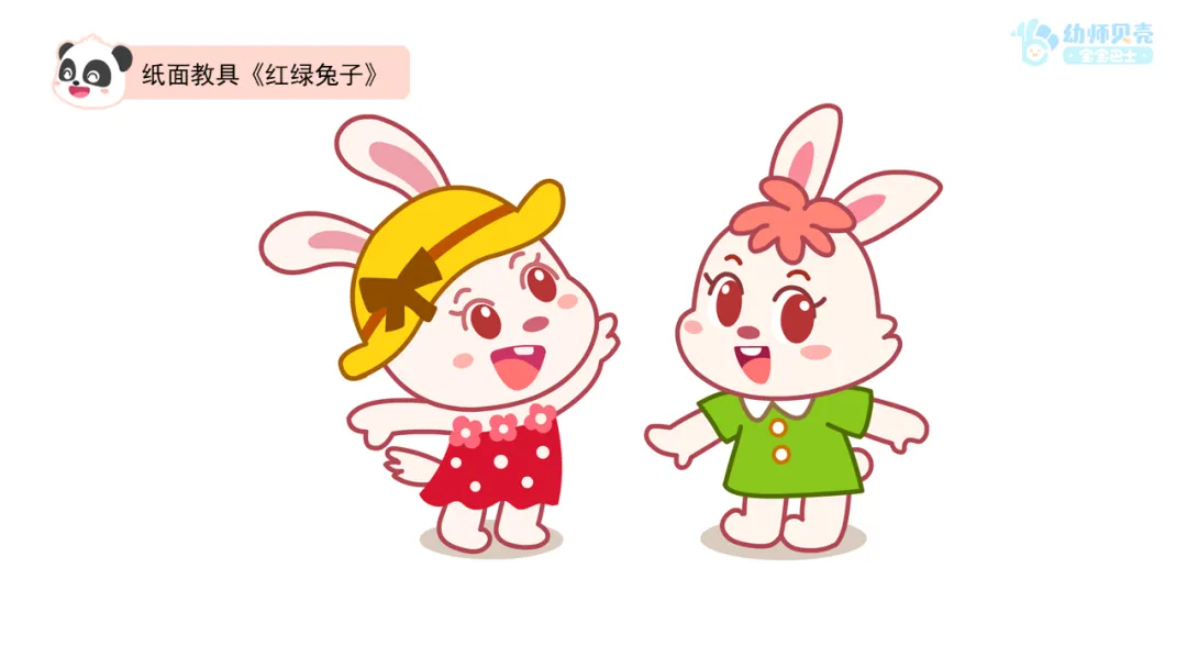——看看图片上是谁?对,穿红衣服的是红兔子,穿绿衣服的是绿兔子。