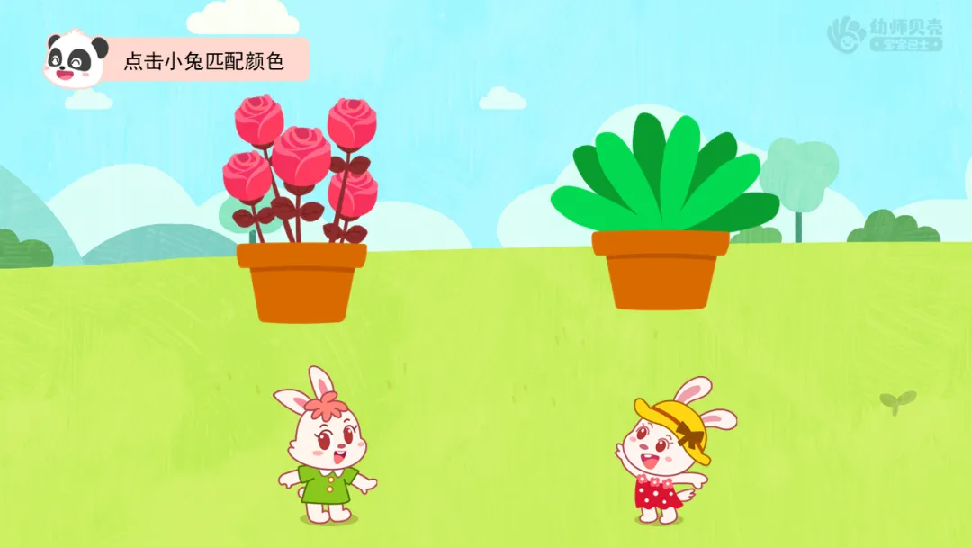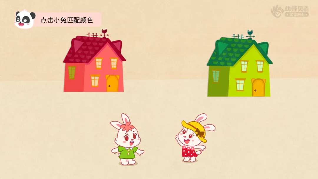 ——红兔子喜欢红色的东西,绿兔子喜欢绿色的东西。我们来看看,它们的家分别是哪个呢?谁来送它们回家。