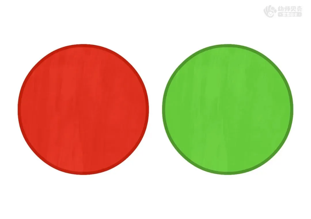 ——拿到红色点点的小朋友排成一队,拿到绿色点点的小朋友排成一队,一起开火车出去找找还有哪些东西是红色和绿色的吧。