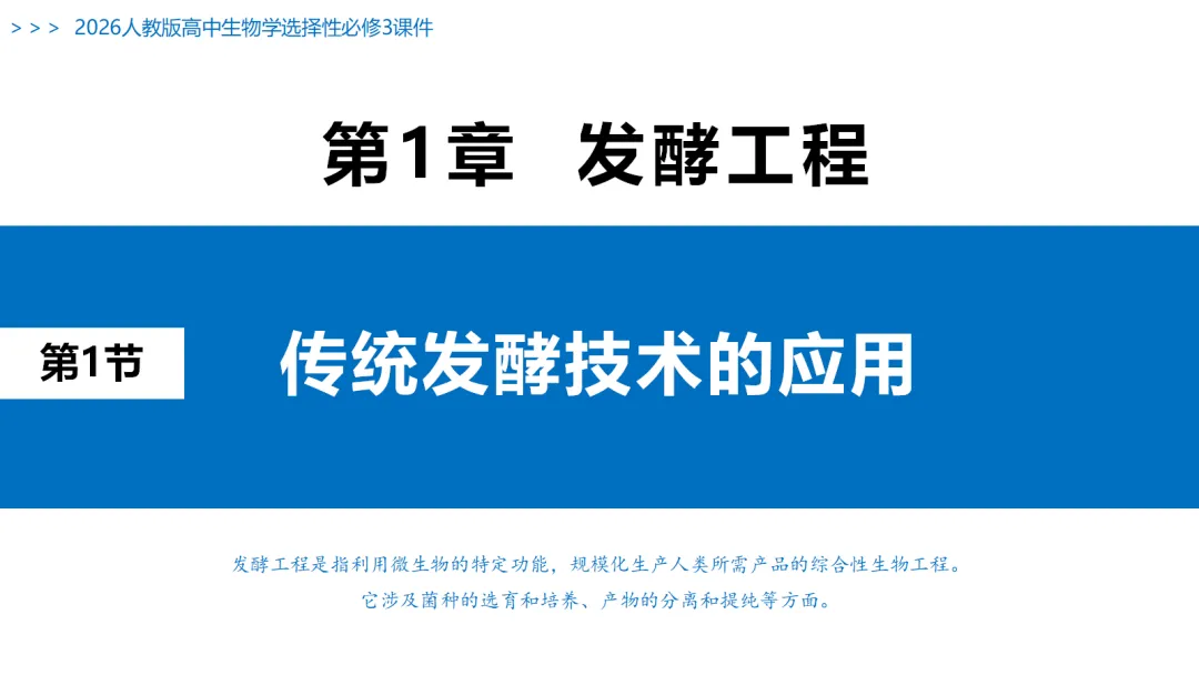 【PPT课件】高中生物学选择性必修3:§1.1 传统发酵技术的应用 | 新课(2026版)