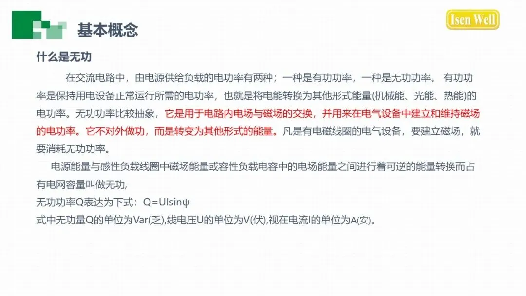 电源能量与感性负载线圈中磁场能量或容性负载电容中的电场能量之间进行着可逆的能量转换而占有电网容量叫做无功,
