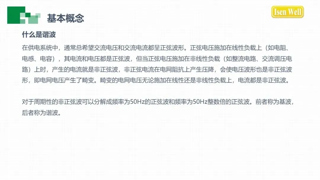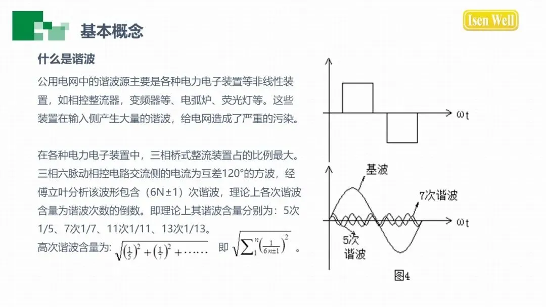 对于周期性的非正弦波可以分解成频率为50Hz的正弦波和频率为50Hz整数倍的正弦波。前者称为基波,后者称为谐波。