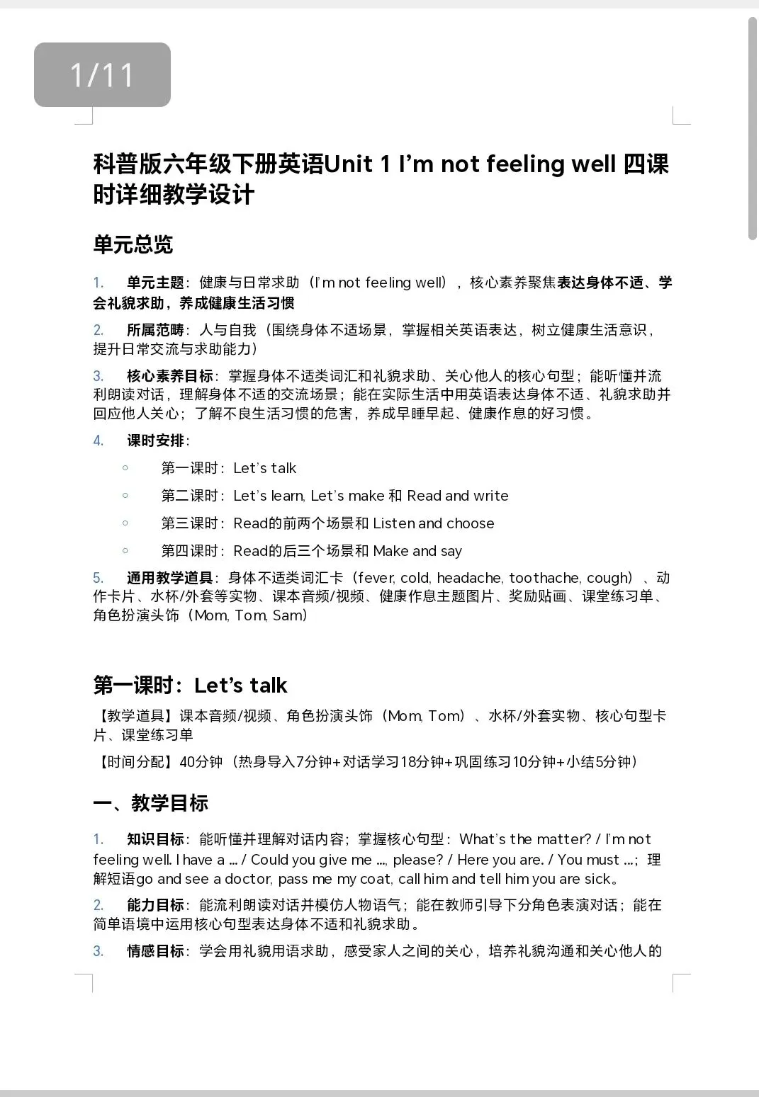 科普版版六年级下册的教学设计,每个单元包含四个课时,包含教学反思,严格依照科普三下的电子课本和教参制作。