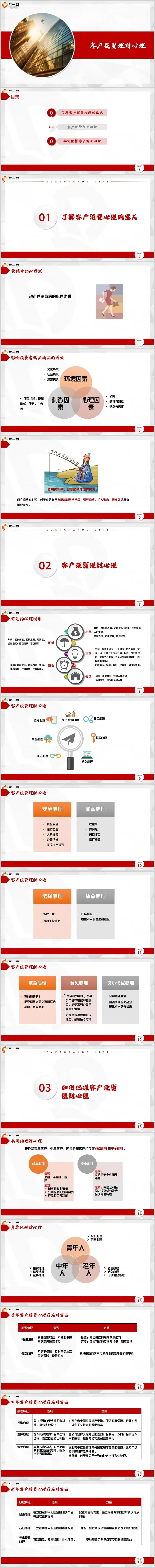 安全心理的表现:关注资金的安全性和灵活性。应对策略是:突出公司品牌优势、投资实力以及产品的稳健特性,让客户感受到“钱放在这里很安全”。