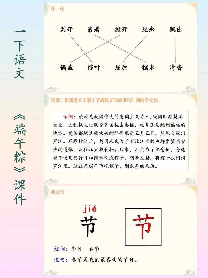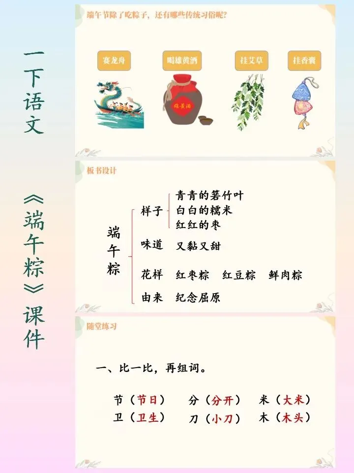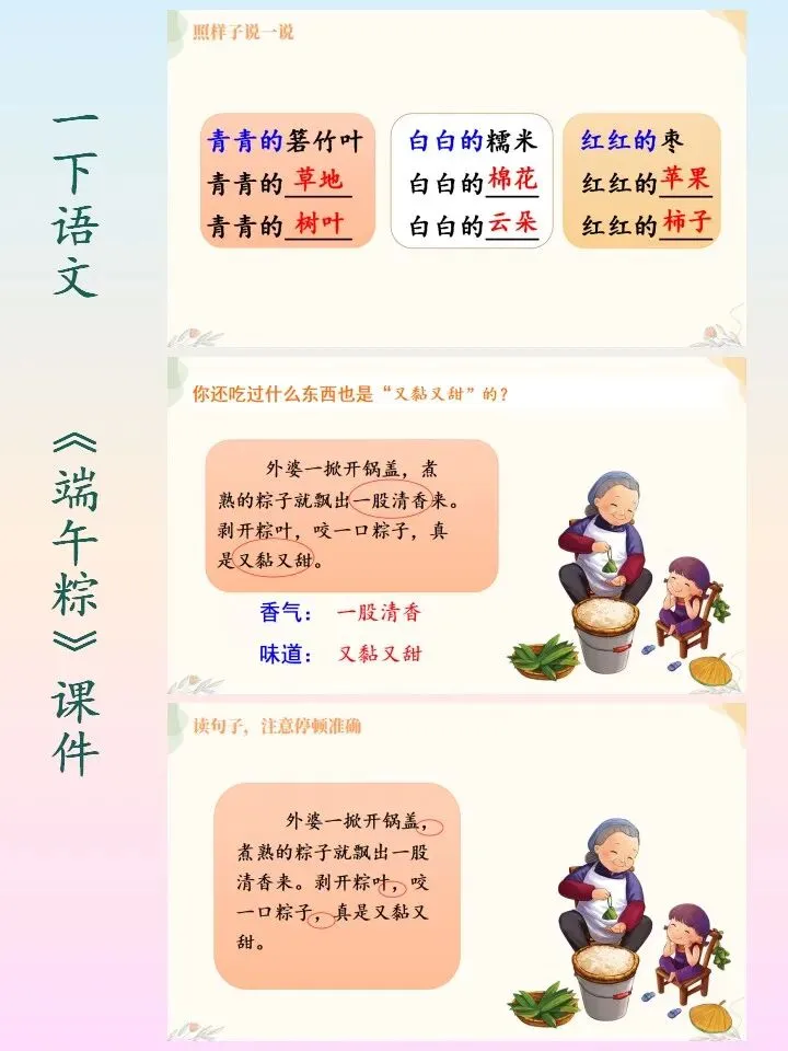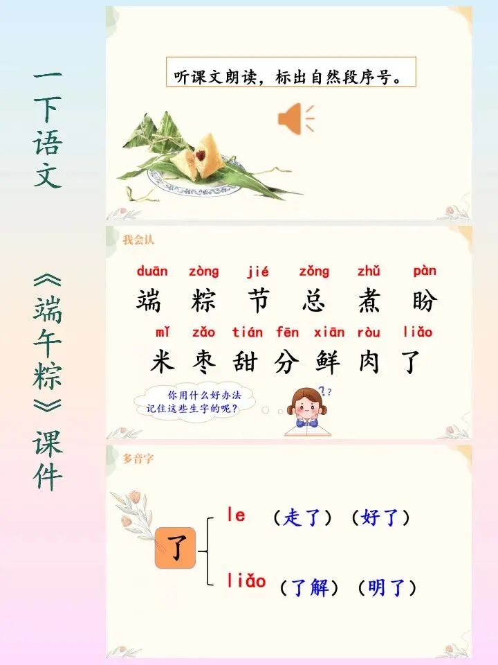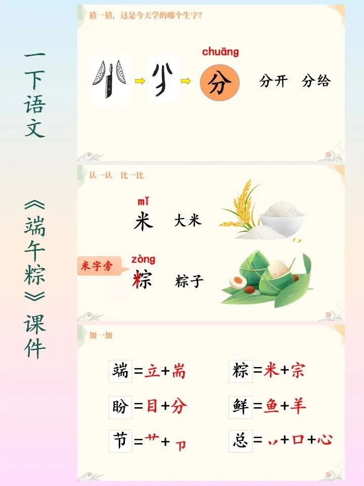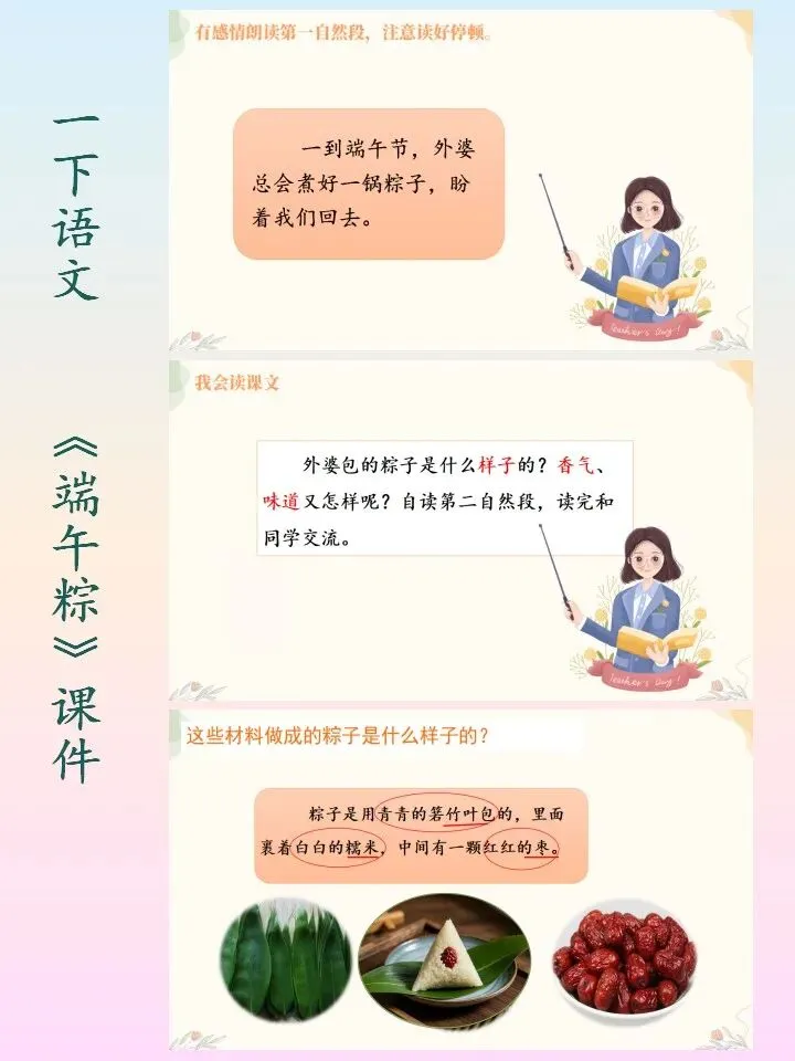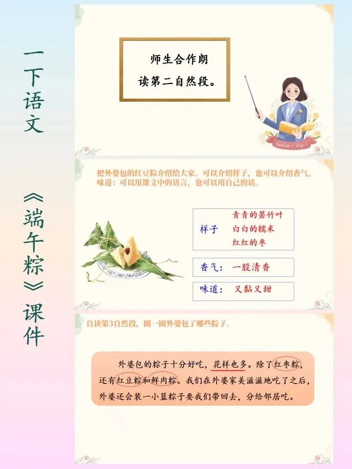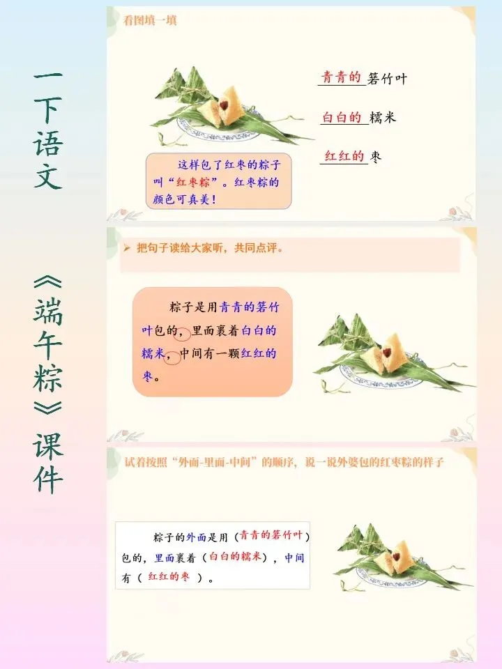🌻小学语文一下语文自制课件,第四单元的《端午粽》课件PPT