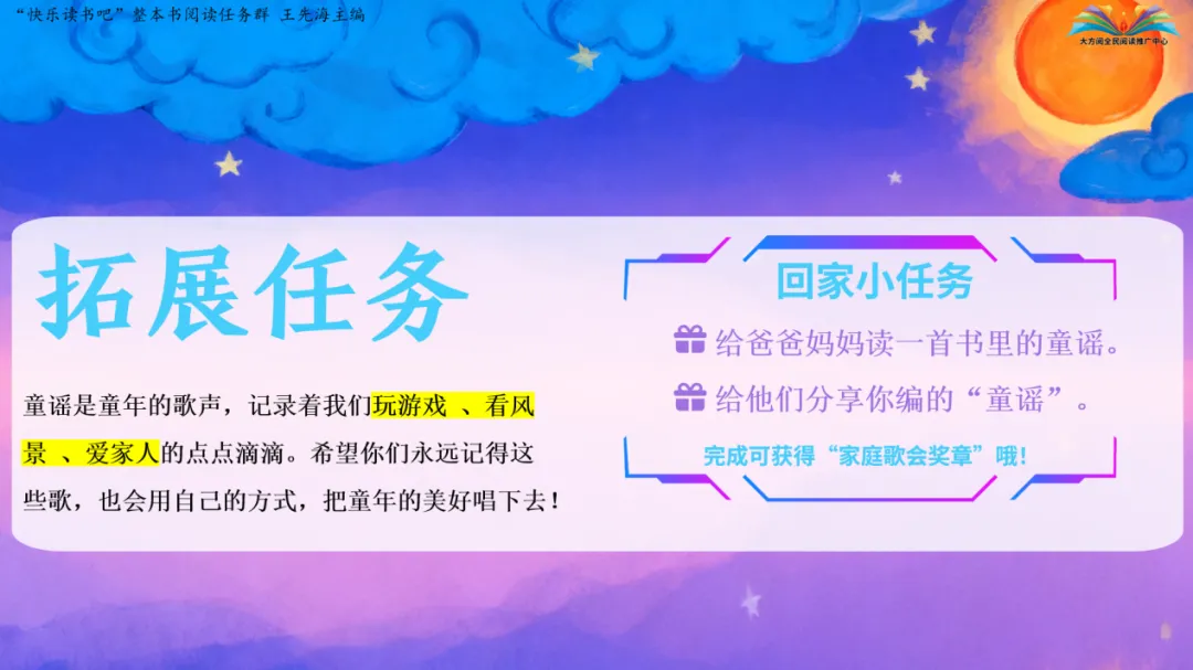 4.评价融入过程:通过“阅读记录卡”“童年歌本”“星级评价”等方式,实现教、学、评一体化。