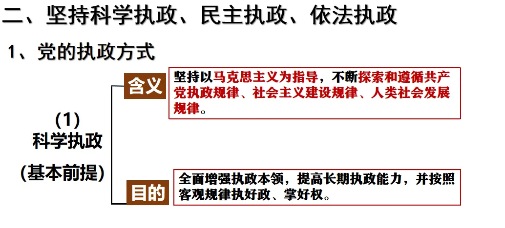 大家都知道,十八大以来,中国特色社会主义进入新时代,在新时代下,这些问题还存在吗?对,还存在,甚至随着世情、国情、党情,这些问题越加严峻和复杂。党的十八大将新形势下党面临的挑战总结为4大考验和4大危险。基于这些复杂、严峻、尖锐且长期存在的考验和危险,党的十八大以来,以习近平同志为核心的党中央提出要全面从严治党。全面从严治党就是新时代下自我革命的生动实践。那究竟可以从哪些方面加强全面从严治党呢?党的十九大报告中,提出了党的建设总要求+PPT展示(简单带过,不是重点)过渡:刚才,我们分析了全面从严治党对于巩固党的执政地位的重要性,除此之外,党还需要提高自身执政能力,完善执政方式。那么,共产党要如何执政,才能更好地巩固它的执政地位呢?从今年两会上审议通过《中华人民共和国生态环境法典》的过程中,我们一起来分析中国共产党是如何执政的。现在请大家四人为以一小组就近讨论:1.为什么党要提出编撰生态环境法典的主张和要求?(生态文明建设与经济发展的需要、人民对优美生态环境、更完善生态环境法治体系的期盼)基于问题1,思考:2.为什么随着经济社会发展、生态文明建设推进,要求系统编撰生态环境法典?(可以从必修一学过的,人类社会发展规律角度来思考)经济发展意味着生产力的提高,我们在必修一讲过,人类社会由低级向高级发展,是由什么推动的?也就是生产力决定? 经济基础决定?法律属于?所以法律这种上层建筑要随着经济基础的变化而变化,更新法律内容,遵循了上层建筑一定要适应经济基础这个人类社会历史发展的规律。此外,党关于编撰生态环境法典的主张也回应了人民对美好生活的需要这一社会主要矛盾,遵循了社会主义建设规律和共产党执政规律。2.体现了共产党在立法法的修改过程中,坚持了何种执政方式?(听到有同学讲到有科学执政,民主执政,对,他们不是相互割裂而是有机统一的)同学们再来思考一个问题,一项工作,比如生态环境法典编撰工作要想取得成功,首先必须保证什么正确?什么样的方向才是正确的方向?遵循客观规律的方向,所以,尊重实际情况和客观规律,科学执政,是基本前提。过渡:刚才两个小组介绍了立法法的修订背景,接下来是第三小组整理的立法法的修改过程。请大家自己阅读一下,同时请第三组代表把这个过程简单画在黑板上。1.小组讨论:党在生态环境法典编撰过程中扮演了什么角色?(可以从党有没有直接行使立法权,编撰法典的最终是由谁决定的,党与人大的关系,党在这个过程中的作用等等来分析)宪法和法律规定,全国人大及其常委会具有立法权,法典编撰属于国家立法工作,中国共产党在执政的过程中也要遵守宪法和法律,所以它没有越过人大直接立法。那他在这个过程中究竟是什么角色呢?刚才同学讲到了,领导立法,首先,党提出编撰生态环境法典的主张,支持人大及其常委会去贯彻执行下去,先拟定草案,审议,最后表决通过。使得党的主张经由这一系列法定的程序上升为国家意志。我们在这个法定程序中,不断的征求人民意见,不断的修改使得它更科学,由此可见,民主执政和科学执政可以通过依法执政来体现。所以依法执政是基本方式。3.在生态环境法典编撰过程中,人民参与了哪些环节?呈现PPT:从最开始,法典就是为满足人民对优美生态环境的需求而编撰的,法典怎么编撰、条文怎么设定,要征求人民的意见,要依靠人民,这就体现了共产党在执政过程中,做到了哪一种执政方式呢?无论是科学执政还是依法执政,最终的落脚点都是为了人民。所以民主执政是本质所在。全面从严治党、不断提高党的执政能力和水平,能够 。