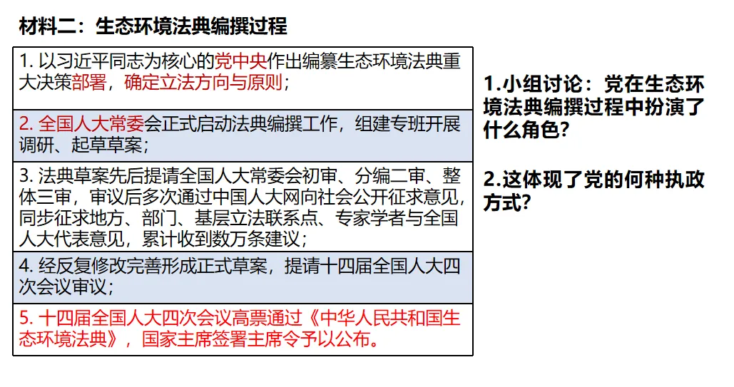 最新课件(完整逐字稿):必修三3.2 巩固党的长期执政地位 ——以生态环境法典编撰过程为例