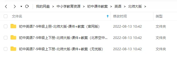 以上课件全部是北京师范大学出版社的初中英语配套课件