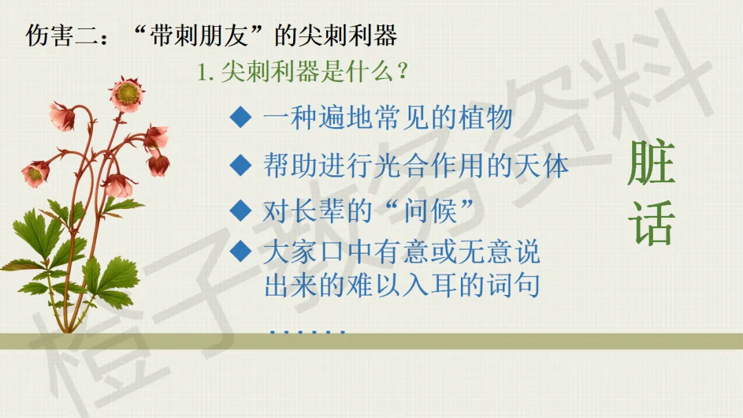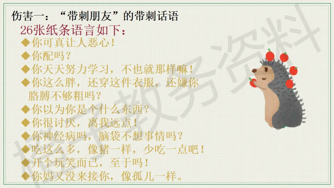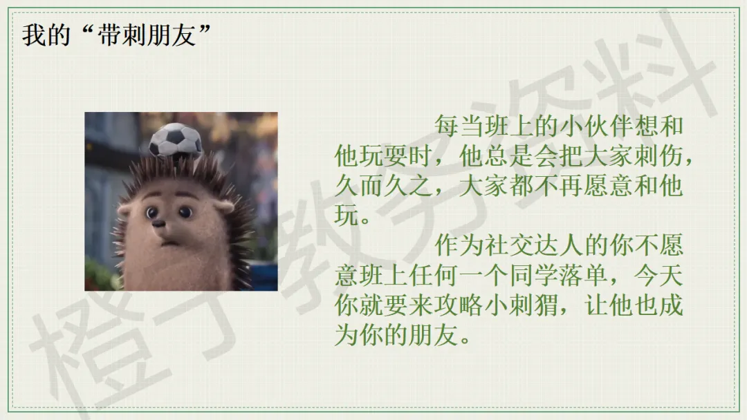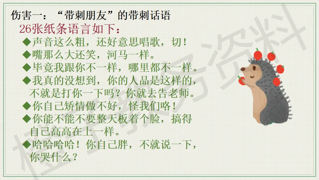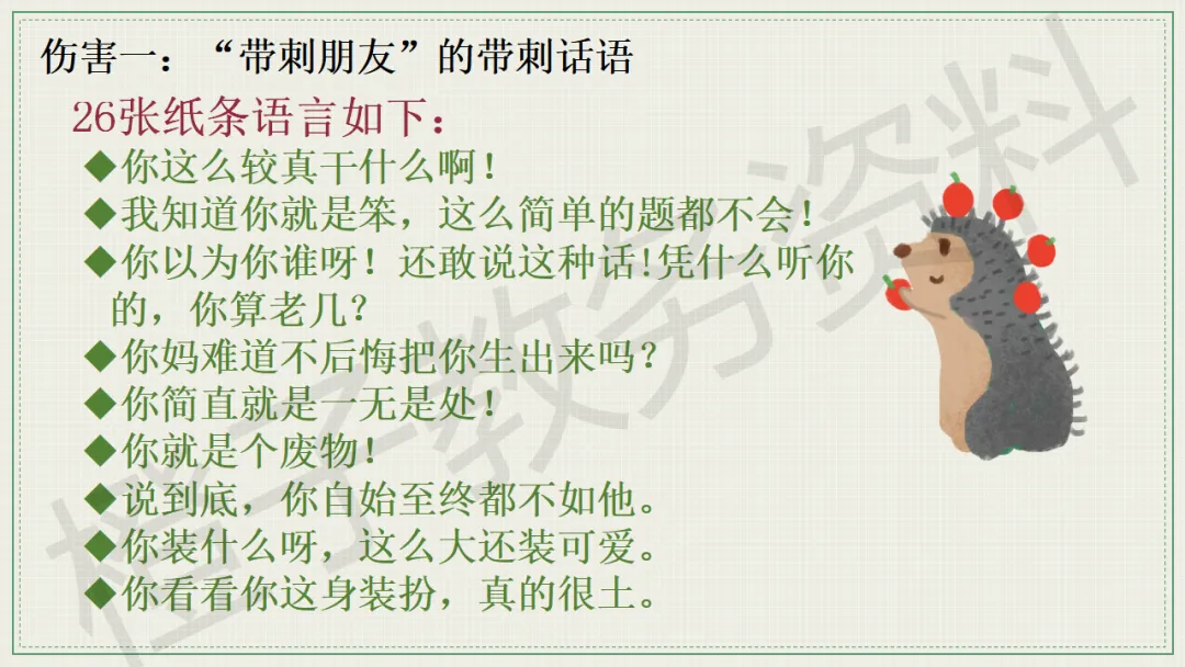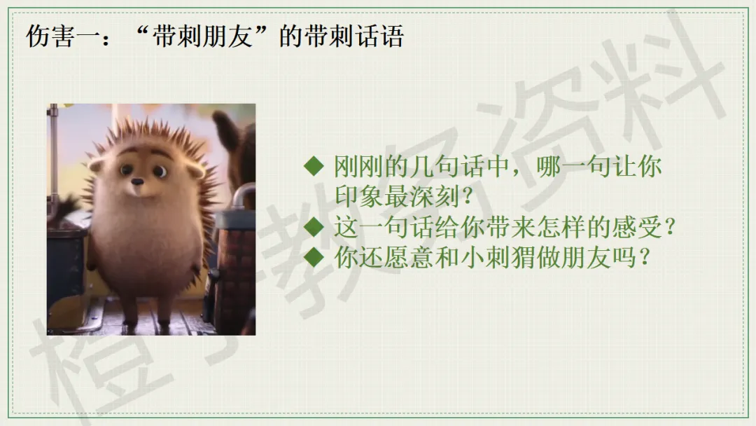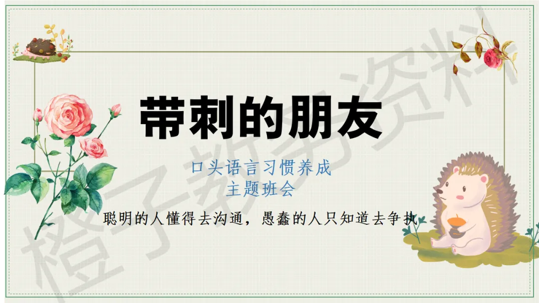 今天分享的是口头语言习惯养成主题班会PPT课件,主题是《带刺的朋友》。
