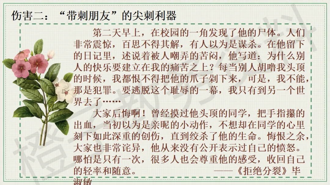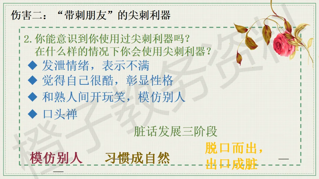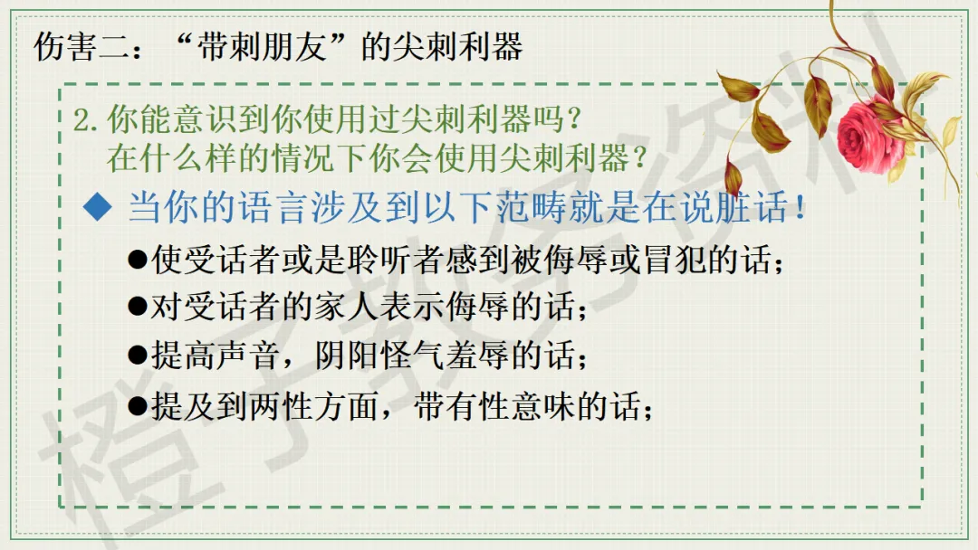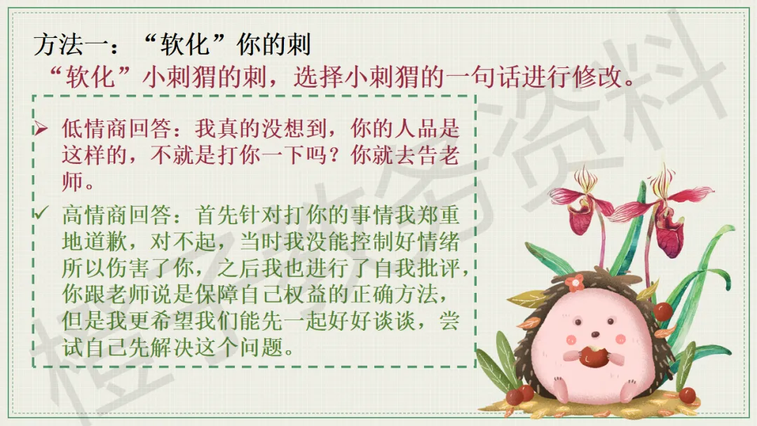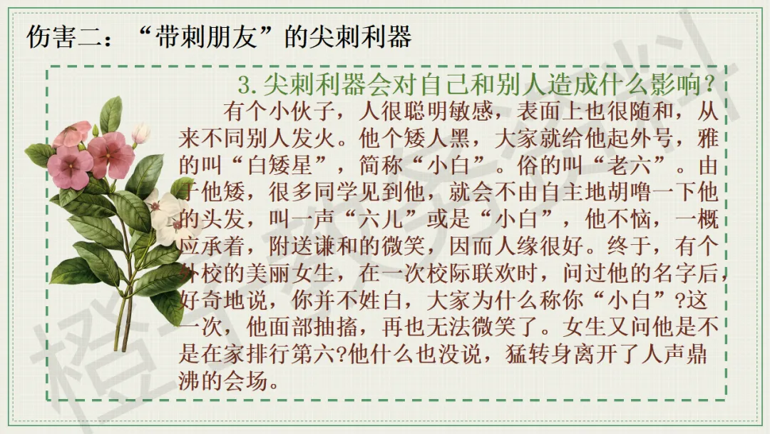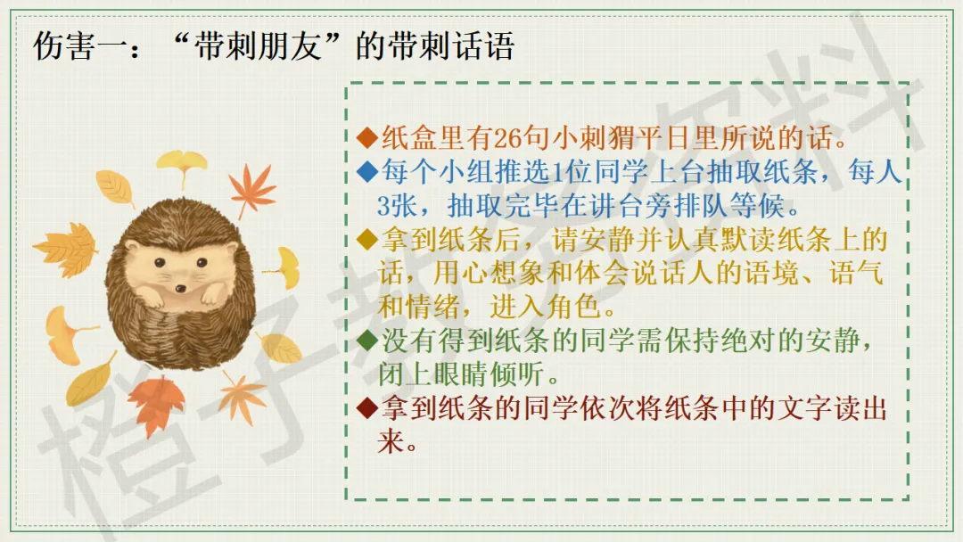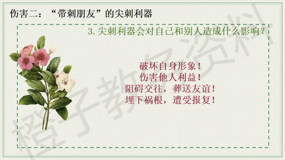 今天分享的是口头语言习惯养成主题班会PPT课件,主题是《带刺的朋友》。