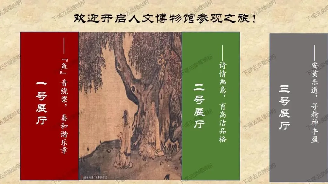 这次博物馆一共分为3个展厅一、“鱼”音绕梁,奏和谐乐章;展厅二、诗情画意,育高洁品格;展厅三、安贫乐道,寻精神丰盈。引导大家深入探索人文精神,领悟其中蕴含的处事智慧、文化教育意义以及生活理念。