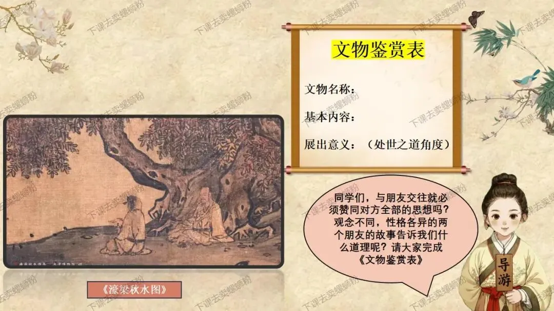 走进濠梁秋水图,庄子与惠子关于“鱼儿是否快乐”的争辩仿佛还在耳边,他们的争辩并非对立攻击,而是以开放心态碰撞智慧,直觉主义VS逻辑主义,浪漫主义哲学家VS现实主义辩士,在差异中深化对世界的认知。真正的君子之交,既能坚守自我追求,又能尊重他人价值。