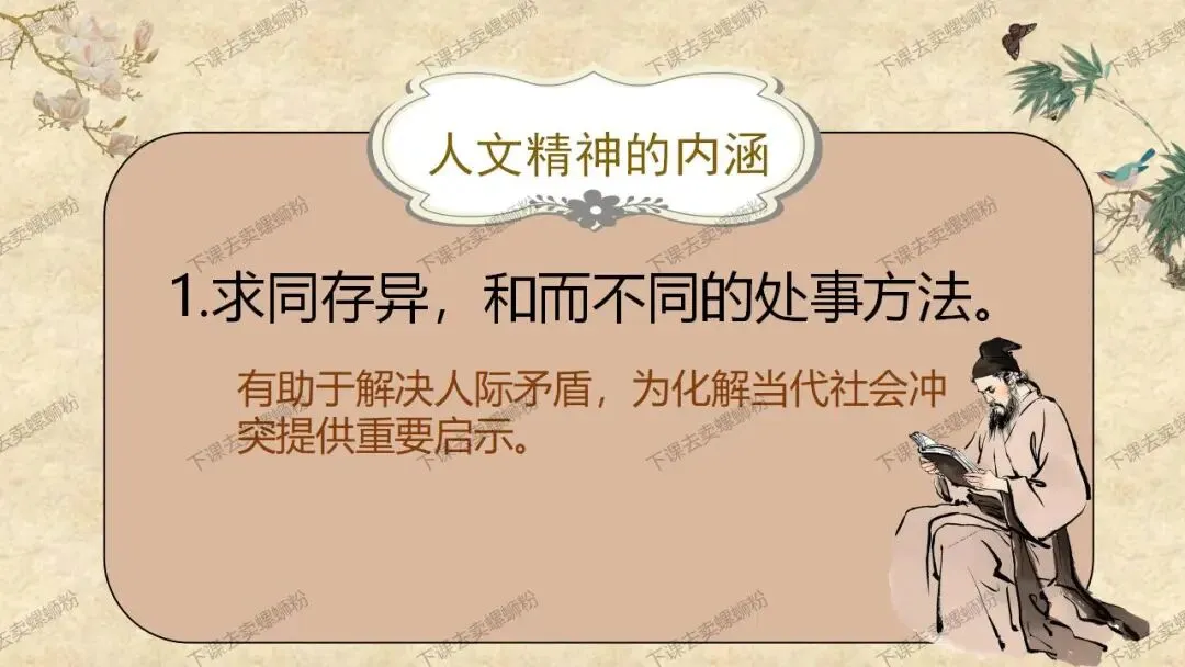 人文精神的内涵:求同存异,和而不同的处事方法。