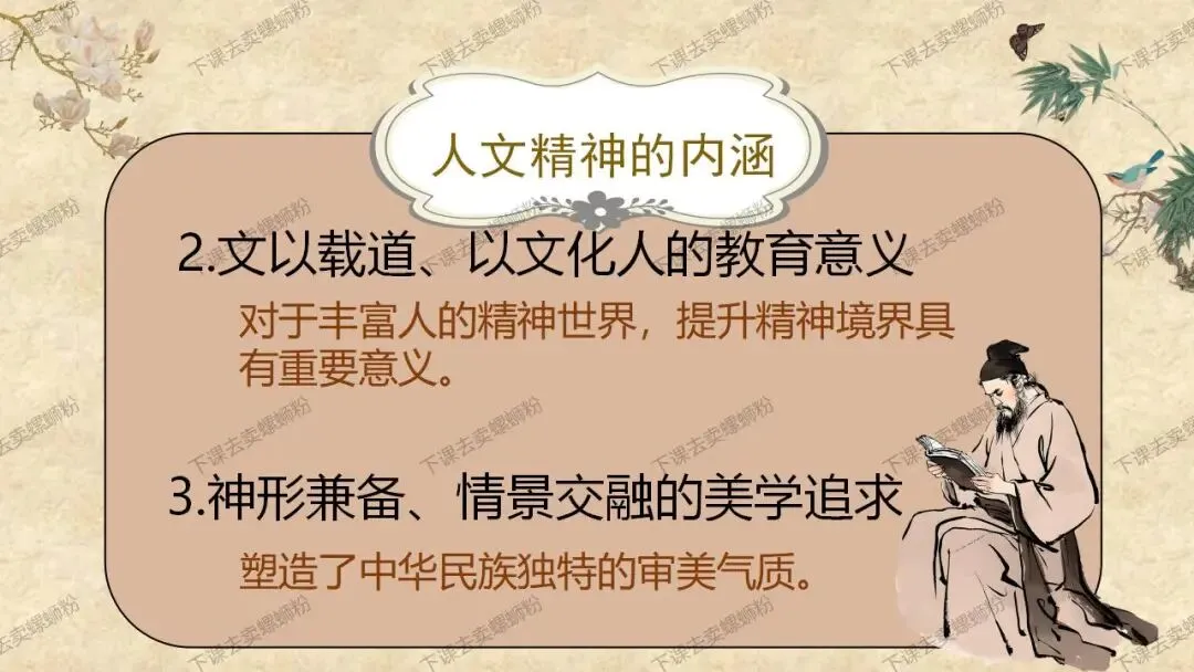 文以载道,以文化人的教育意义;神形兼备、情景交融的美学追求。