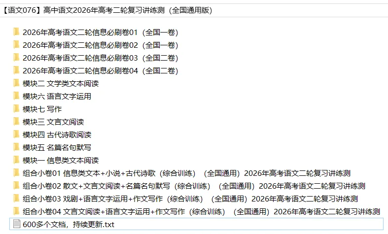 今天思齐给同学们整理了高中语文——2026年高考二轮复习讲义课件练习题(全国通用版)。家有高中生的家长可以给孩子下载打印一份。