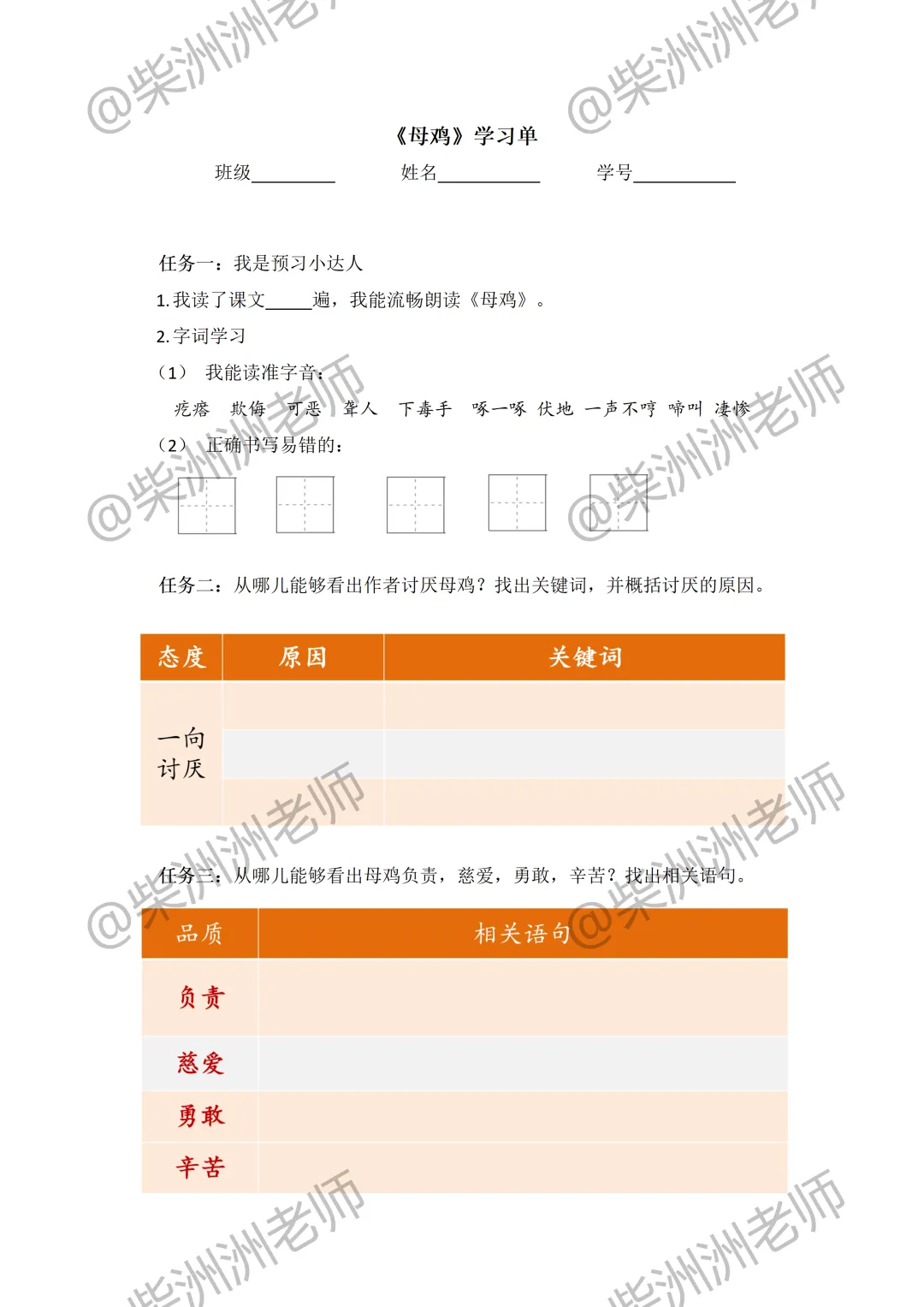 当我学会用AI做公开课I 《母鸡》课件+教案+学习单