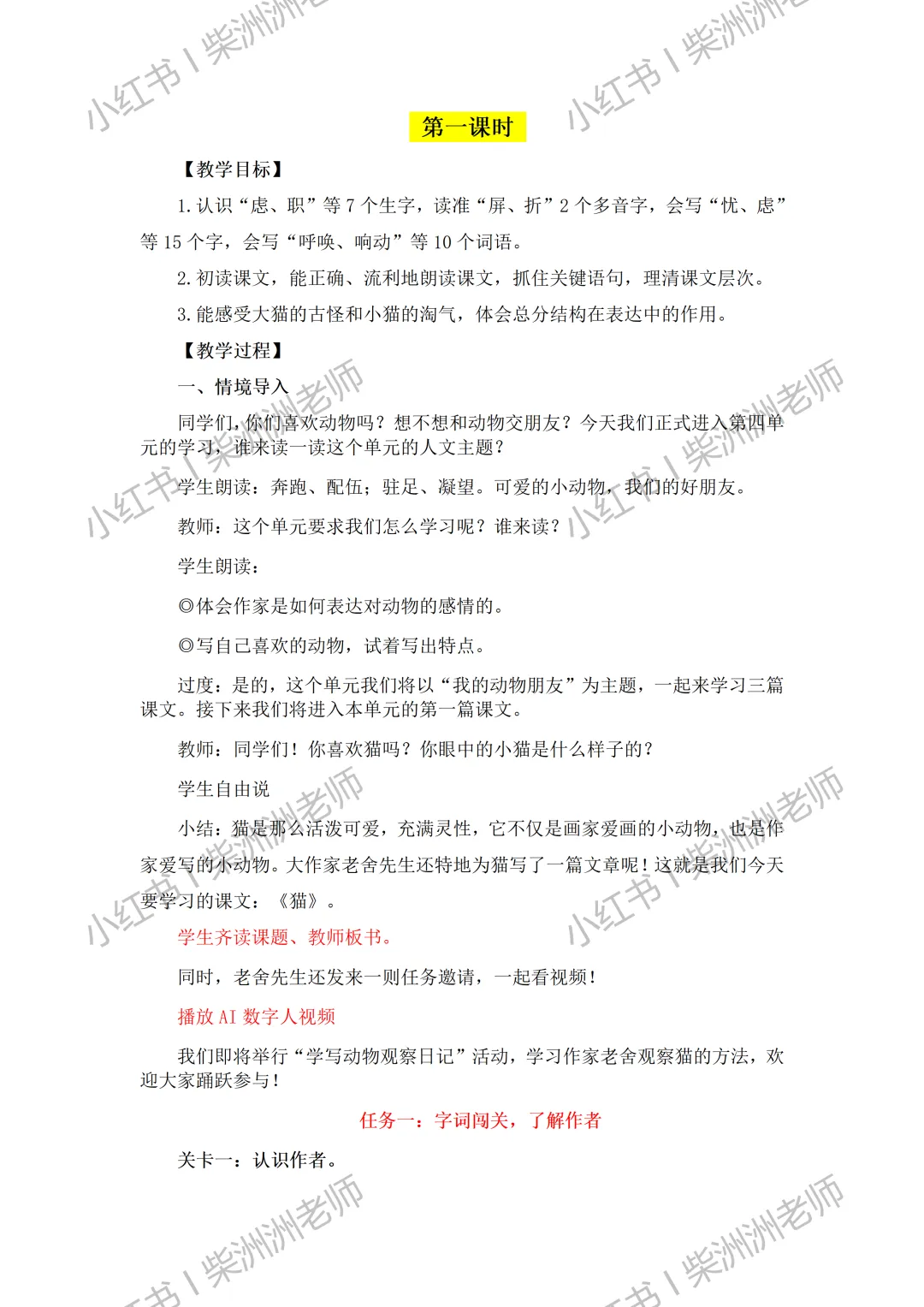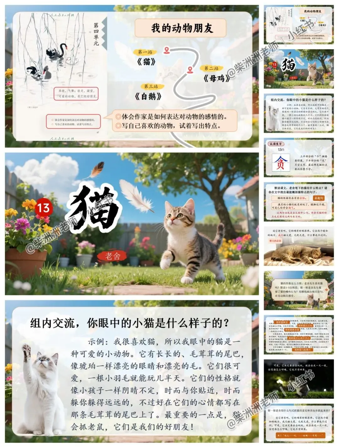 当我学会用AI做公开课I 《猫》课件+教案+学习单