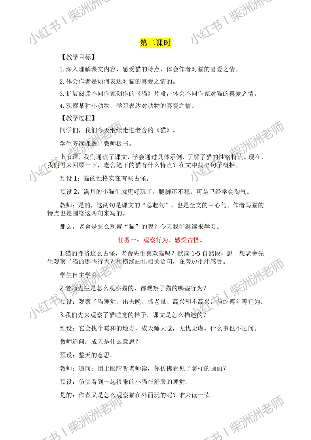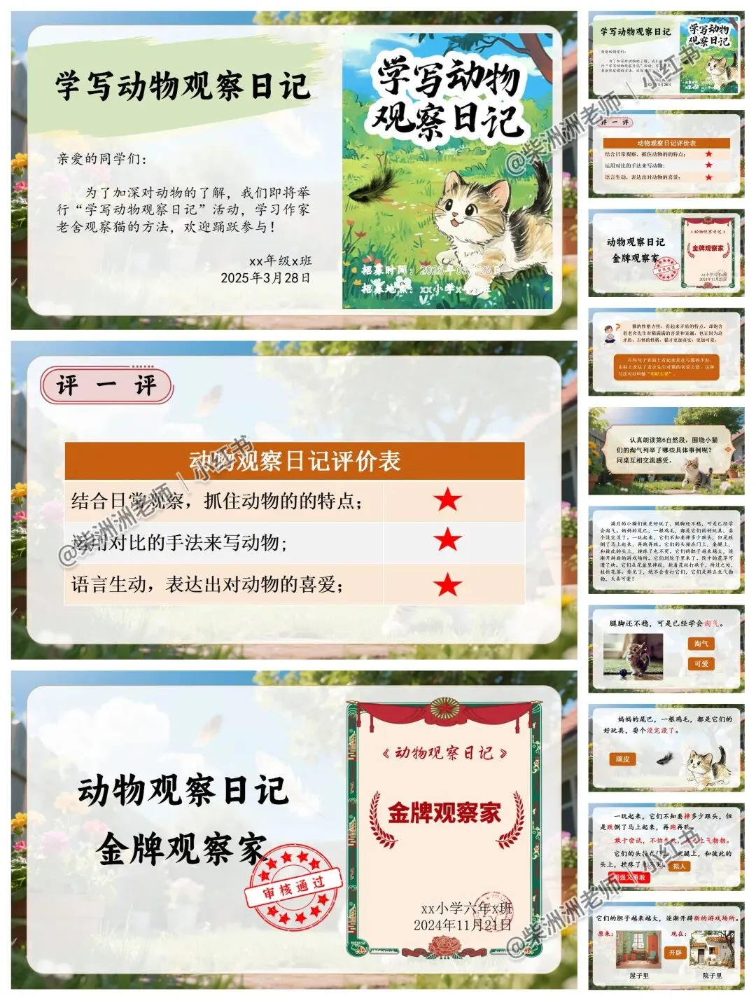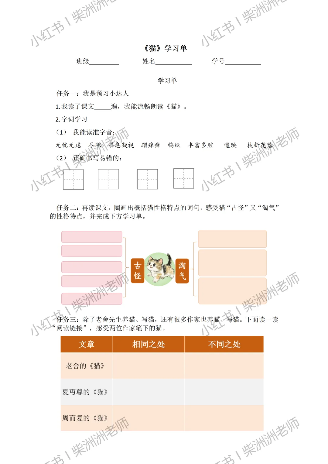 AI赋能!四下《猫》公开课课件+教案+学习单!学写动物观察日记