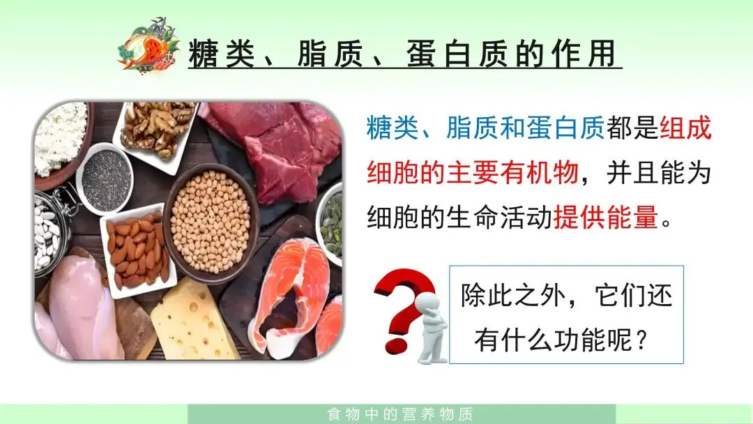 关注公众号,在微信公众号后台发送【食物中的营养物质-七年级生物下册第四单元第二章第一节】,即可免费获得推文中的课件。