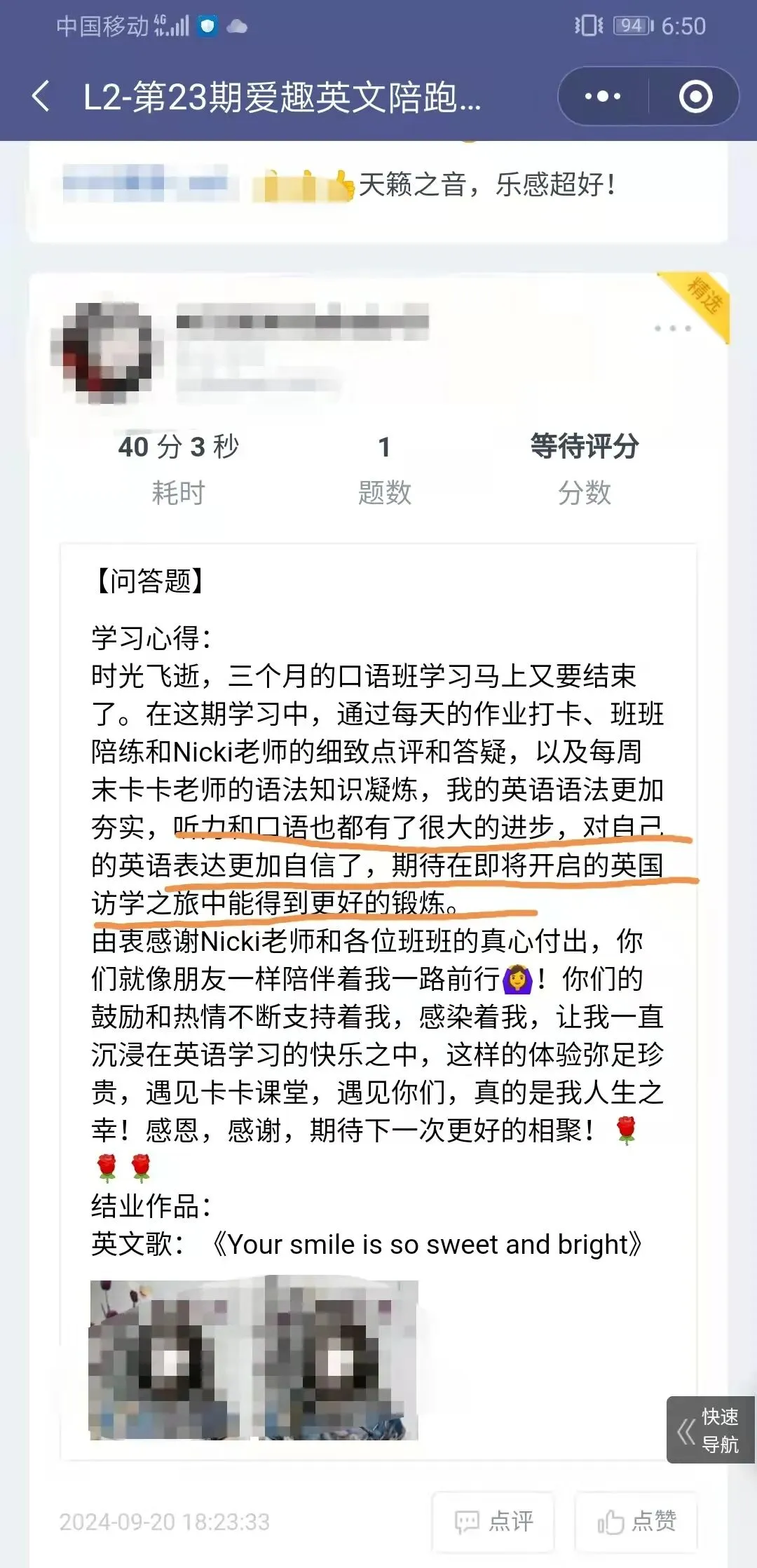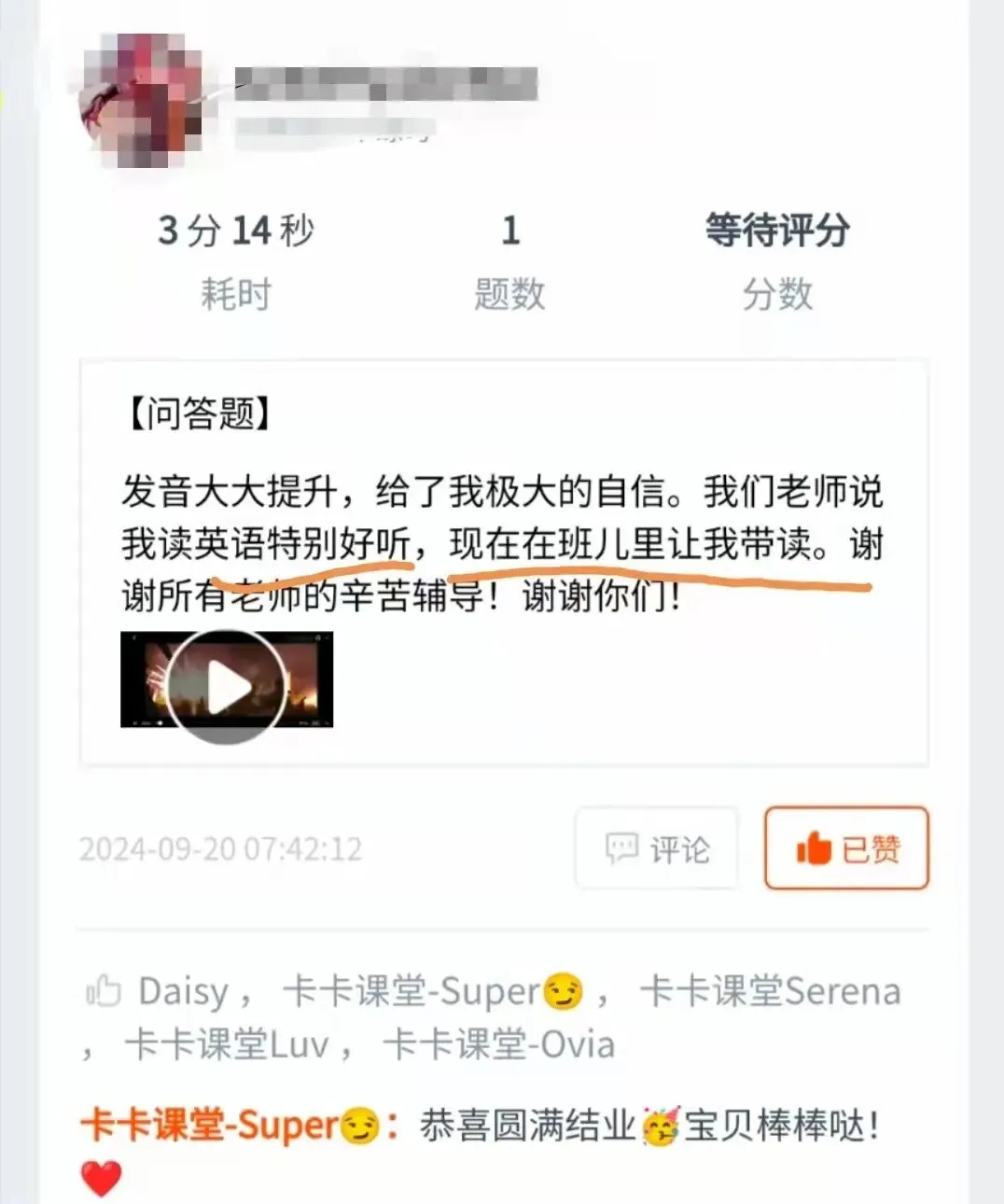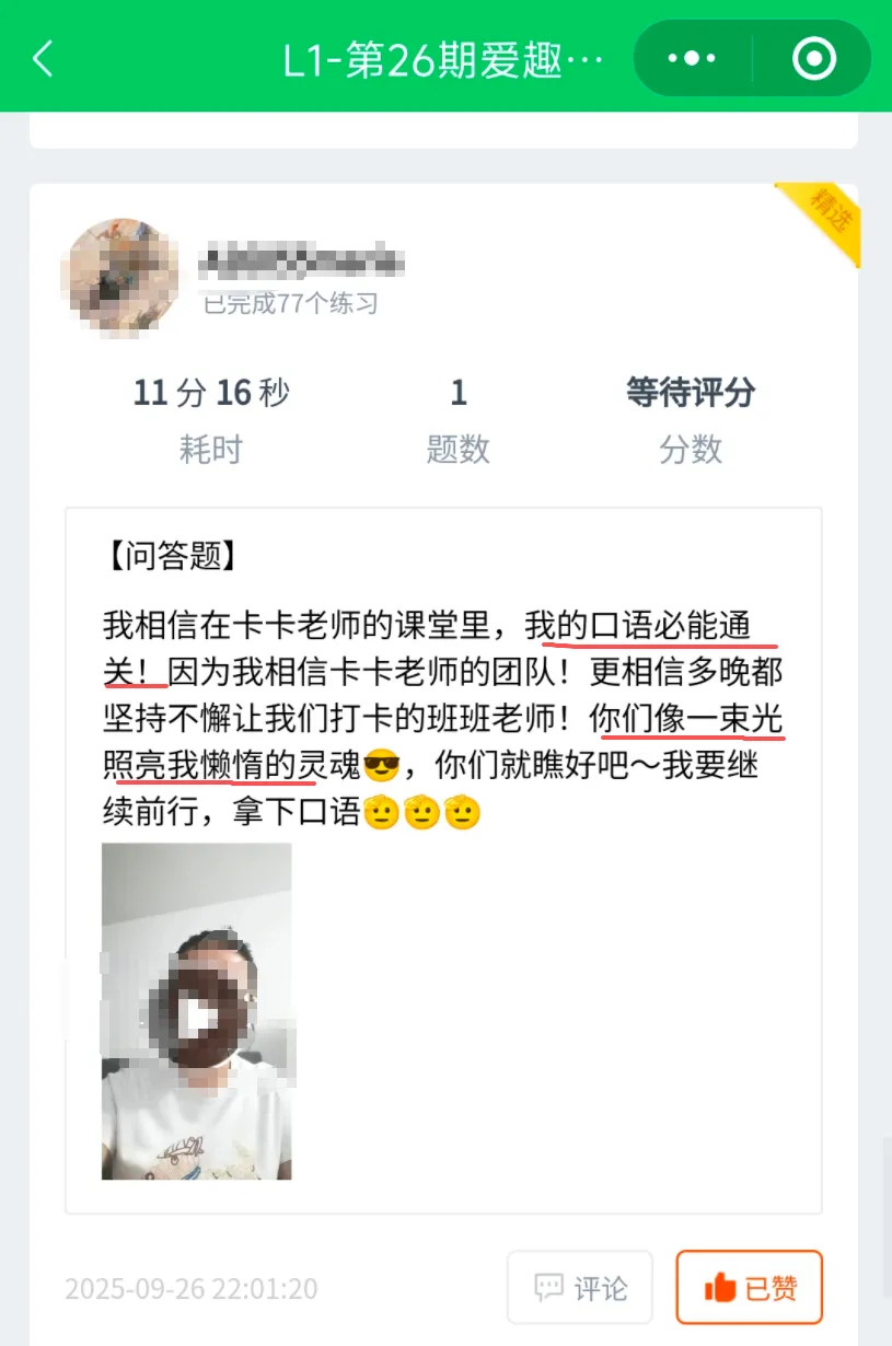 每周的作业中,小伙伴们都会用视频记录自己在英语上的收获;