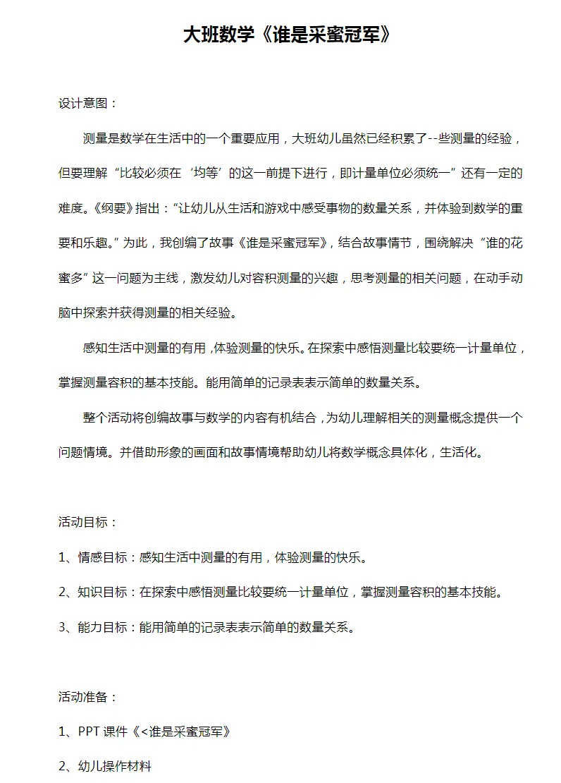 37大班数学测量《谁是采蜜冠军》视频+教案+课件+音乐+教具