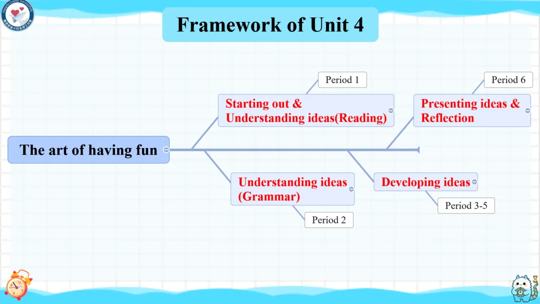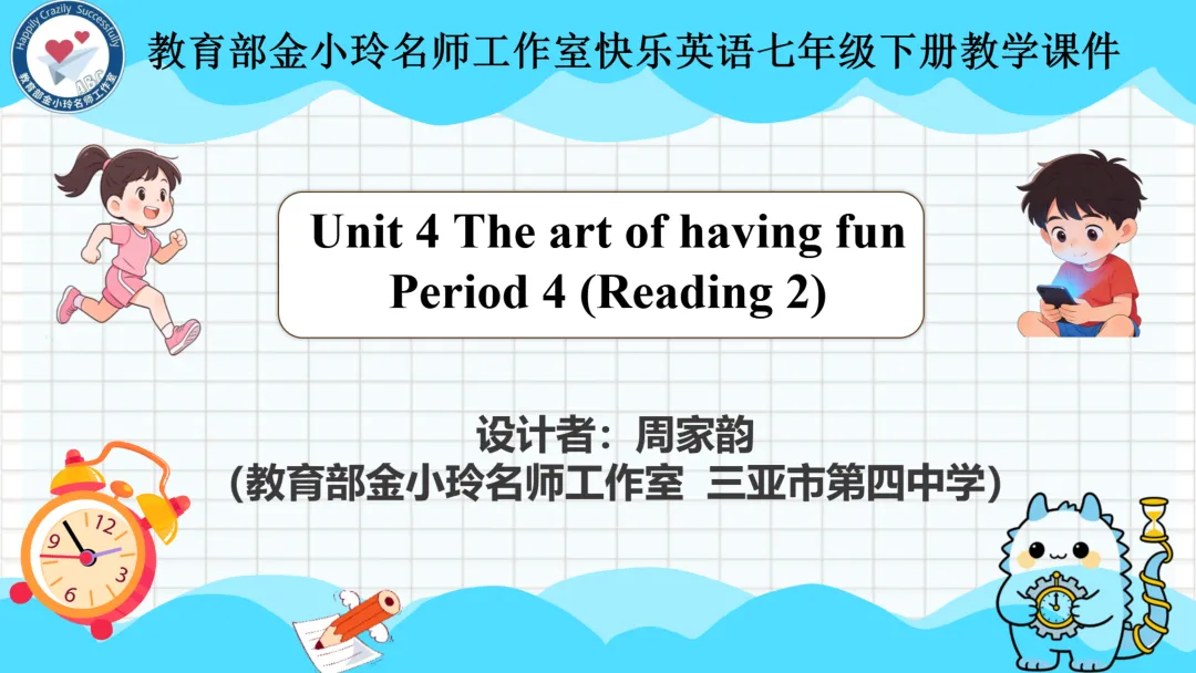 本期我们将推出由崔根萍、庄楠楠团队周家韵老师精心打磨的Unit 4 The art of having fun Period 4(Presenting ideas &Reflection)教学课件。让我们携手共进,一同探索英语教学的无限可能!期待与您共同成长,让英语课堂绽放更多精彩!