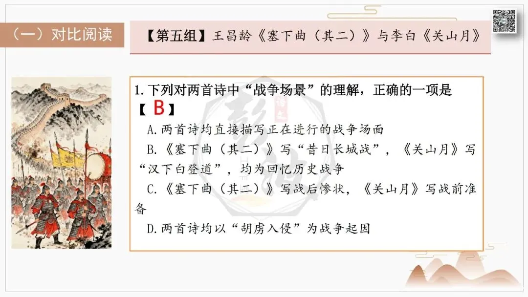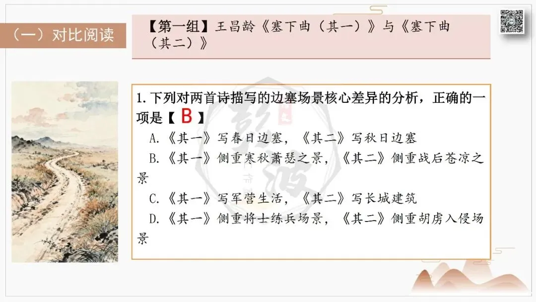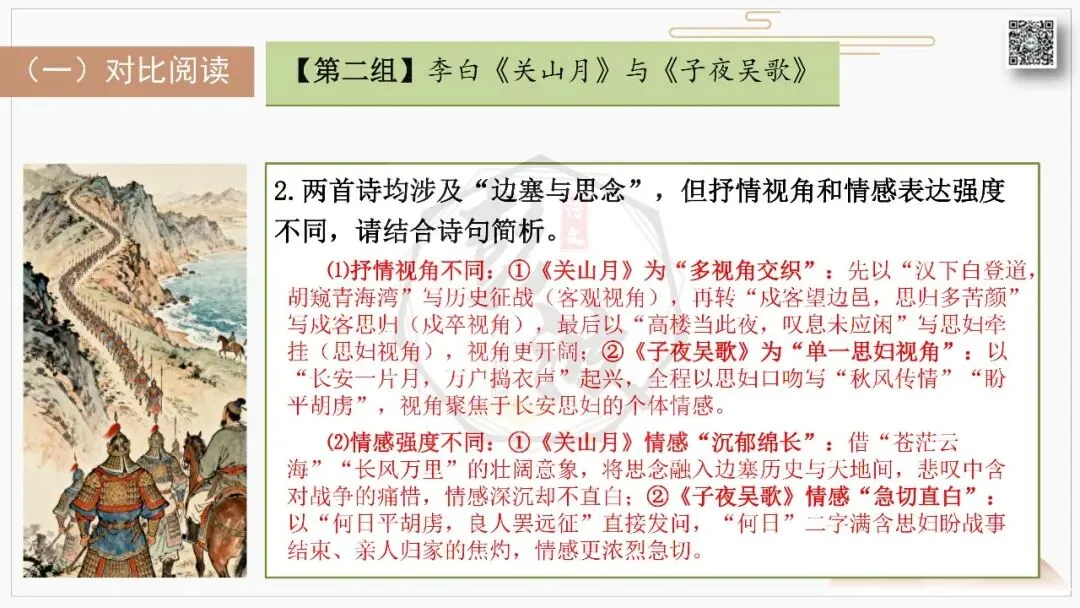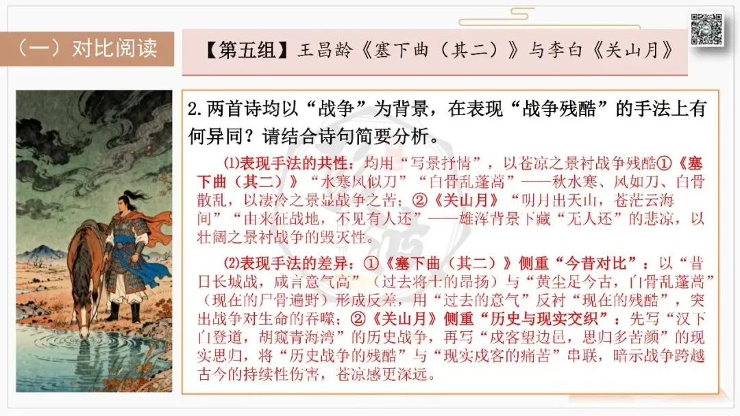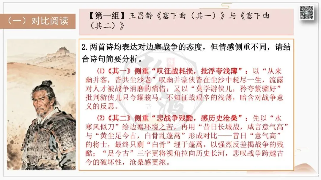 比较阅读:对比同题材作品,如王昌龄《出塞》与王之涣《凉州词》的边塞书写