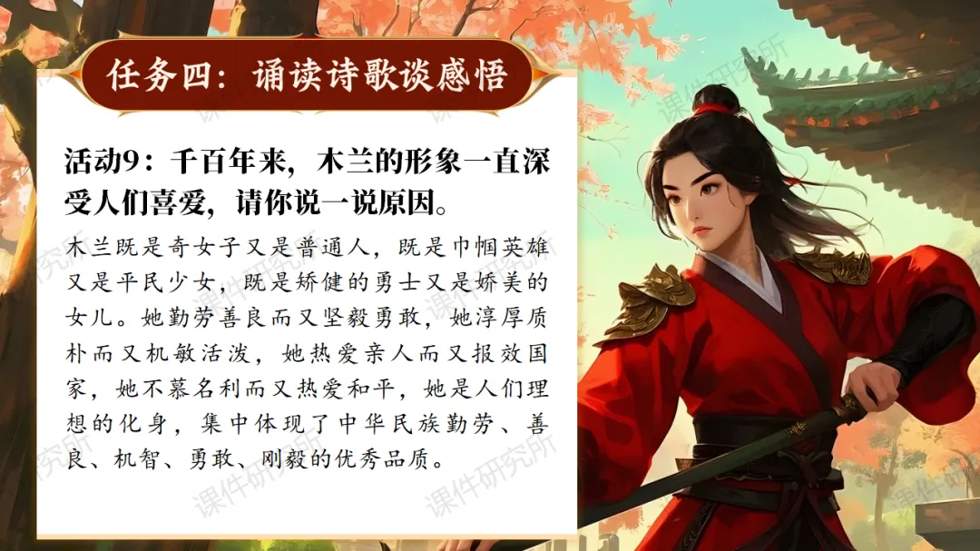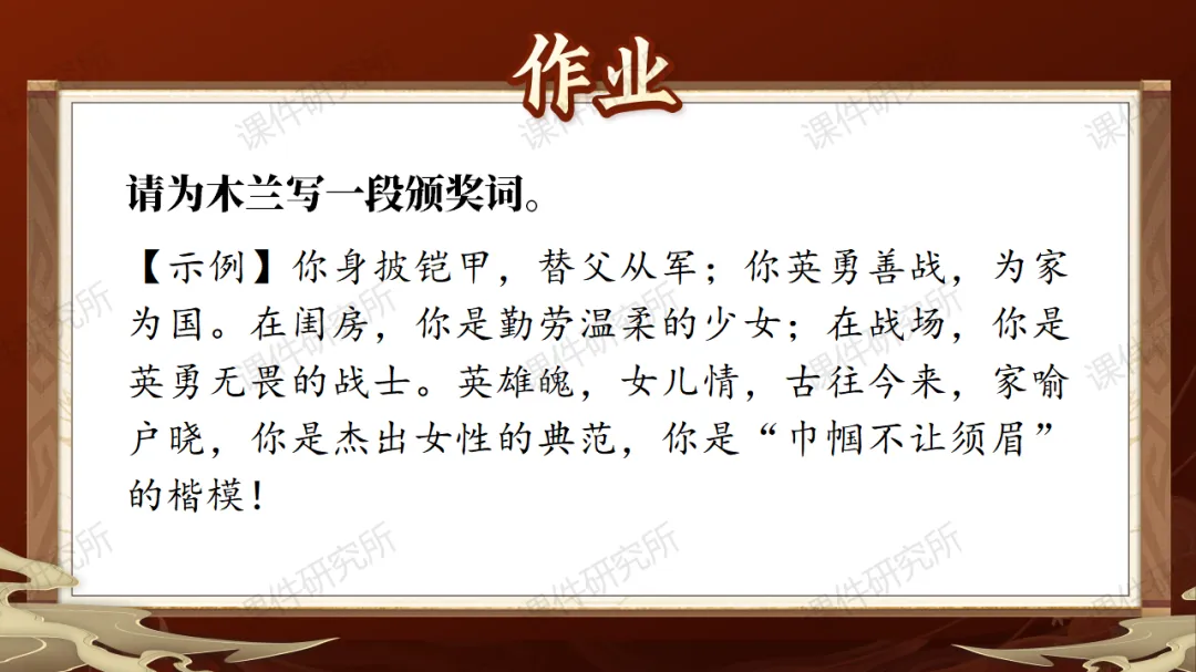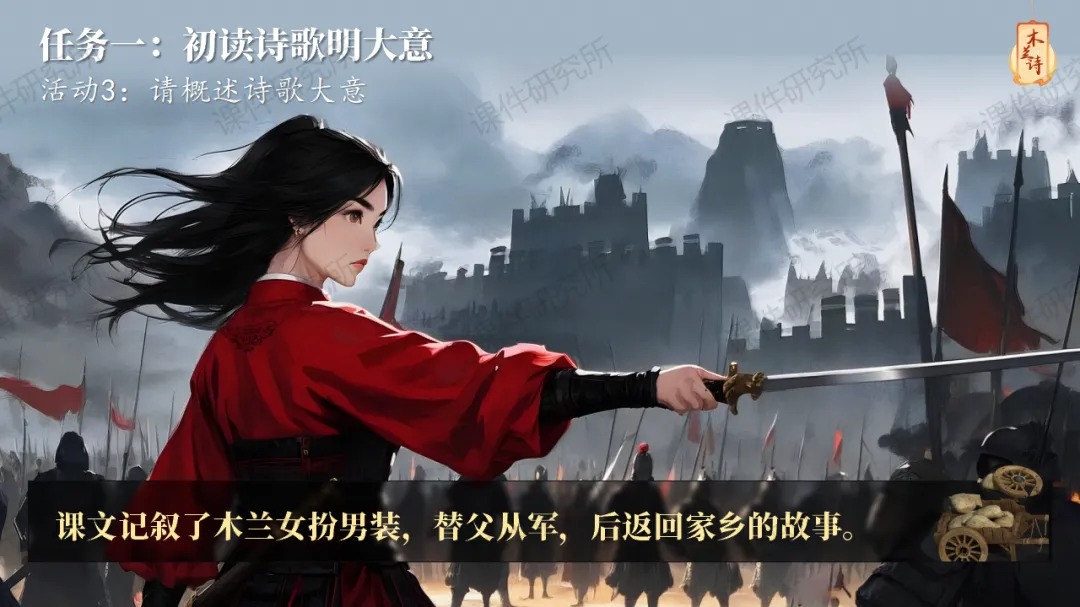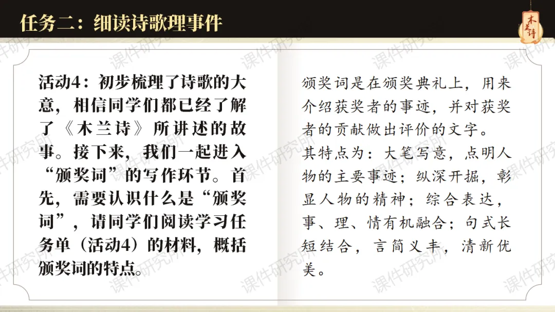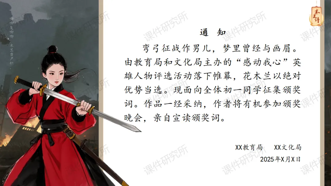 以创作颁奖词为情境打开《木兰诗》课件,打造沉浸式课堂,学生参与度拉满! | 自营系列