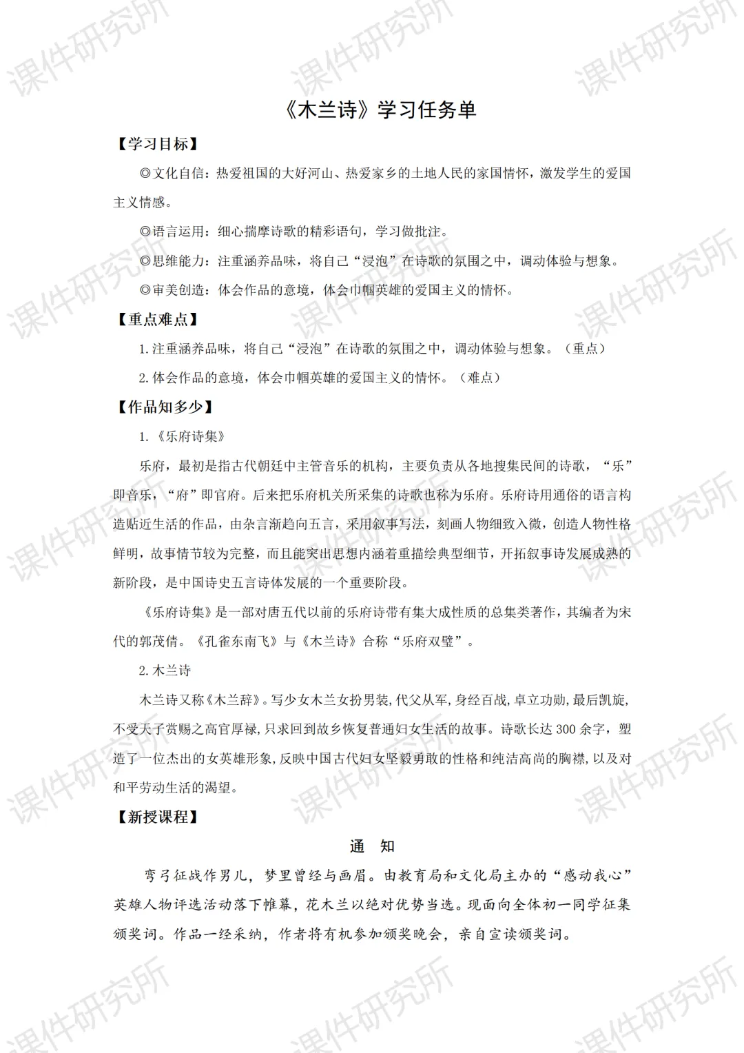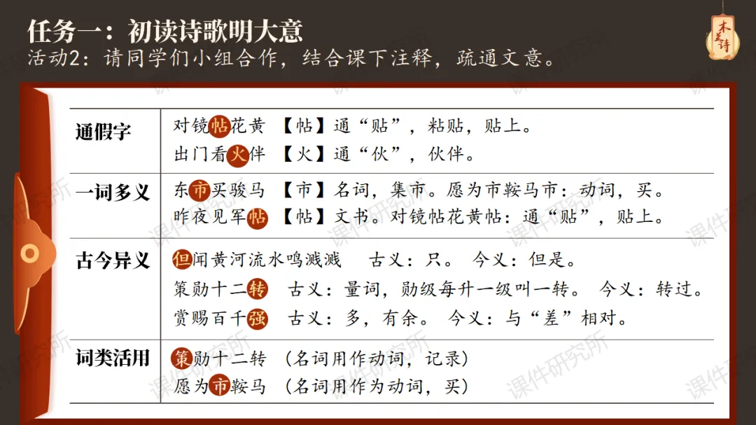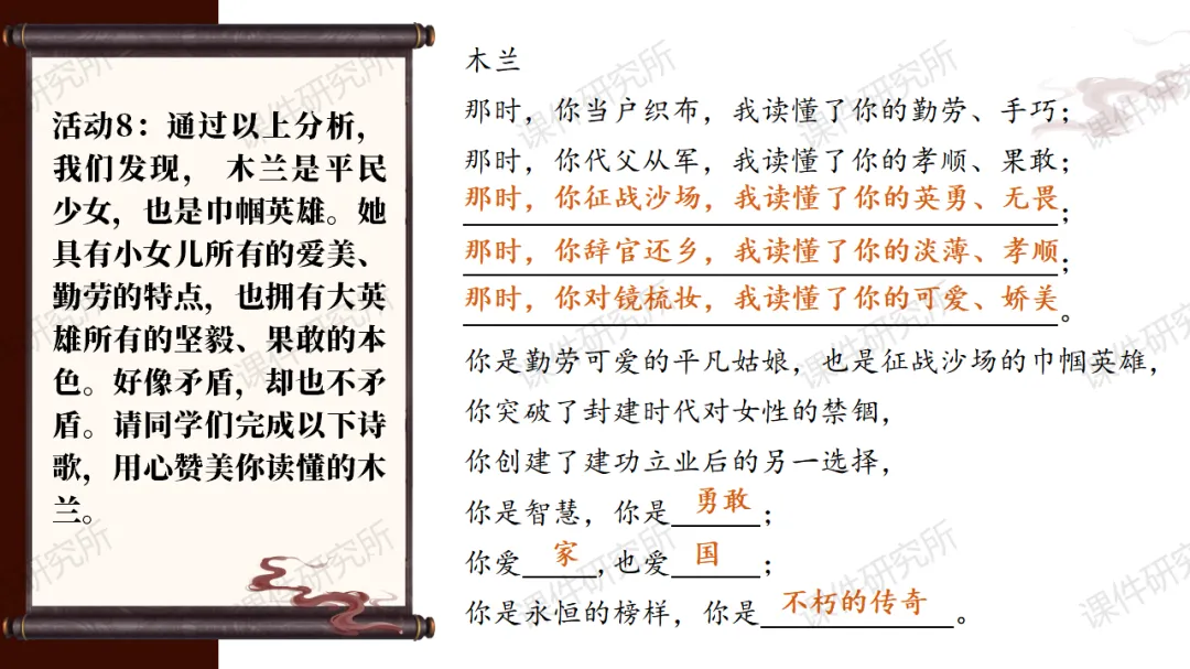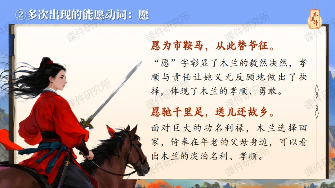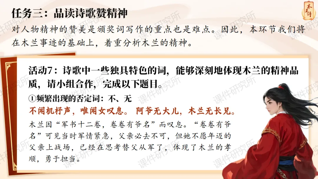 以创作颁奖词为情境打开《木兰诗》课件,打造沉浸式课堂,学生参与度拉满! | 自营系列