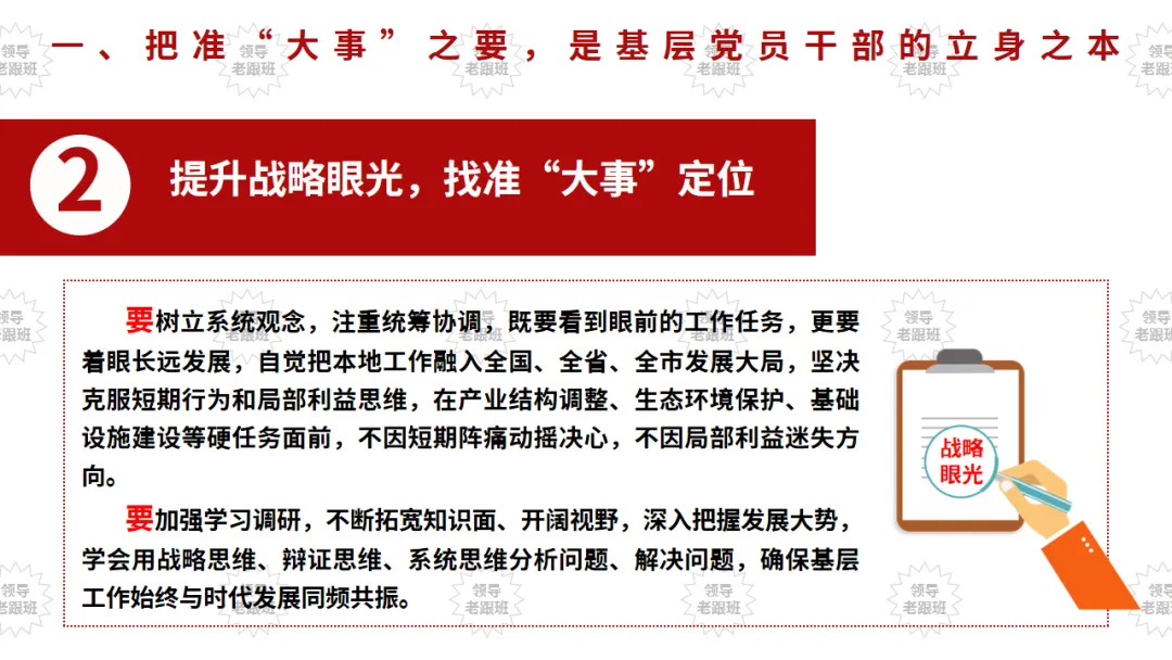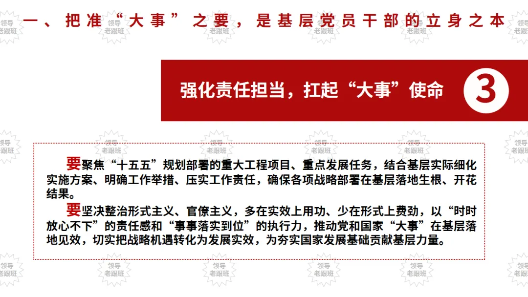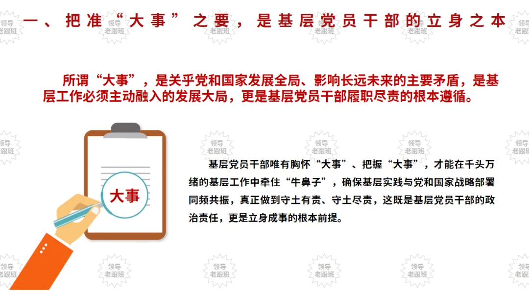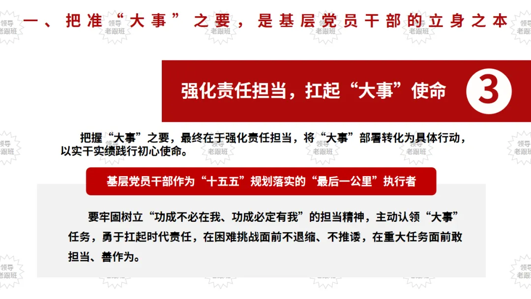 “不谋全局者,不足谋一域;不谋万世者,不足谋一时。”古人传承的统筹兼顾智慧,穿越千年依然闪耀真理光芒,对新时代基层党员干部推进国家治理现代化、落实“十五五”规划部署具有深刻指引意义。当前,“十五五”规划已正式启动实施,我国进入“夯实基础、全面发力”的关键发展阶段,承前启后、继往开来的使命落在每一位基层党员干部肩上。作为党的执政根基,基层党员干部身处工作一线,既要胸怀全局、着眼长远,精准把握“大事”方向,又要脚踏实地、注重细节,用心做好“小事”落实,深刻把握二者辩证关系,在统筹兼顾中筑牢根基、履职尽责,努力成为让党放心、让人民满意的基层“领头雁”,为中国式现代化建设贡献基层力量。