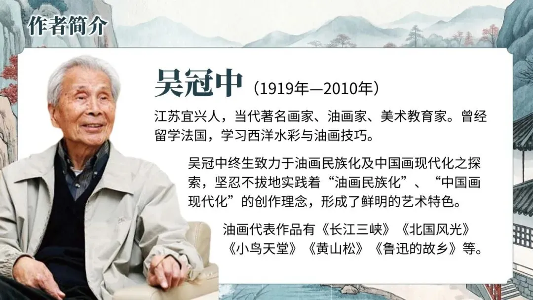 本文是当代画家吴冠中的散文名篇。文章从对江南阴雨景色的独特审美偏好切入,探讨中国画"水墨渲染"与西洋画"阳光追逐"的不同艺术追求,提出"阴"与"晴"的辩证美学观。作者结合自身创作经历,阐述对中西绘画融合的探索,强调艺术贵在创新与个性表达。全文融画理与诗情于一体,语言清新隽永,体现了吴冠中作为画家散文家的独特视角与审美情趣。