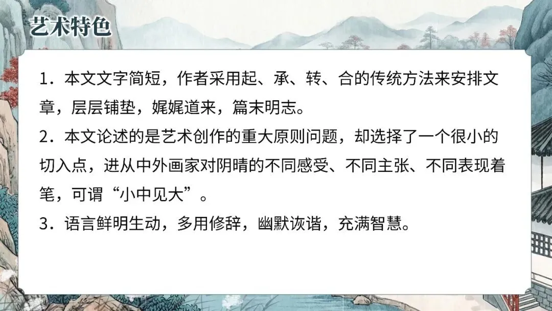 本期更新的课件为统编高教社版中职语文基础模块下册第五单元《画里阴晴》,共37页。