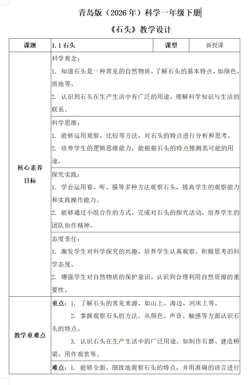 2026最新青岛版小学科学一年级下册课件+教案+课课练+试卷等(全套下载) 可编辑打印