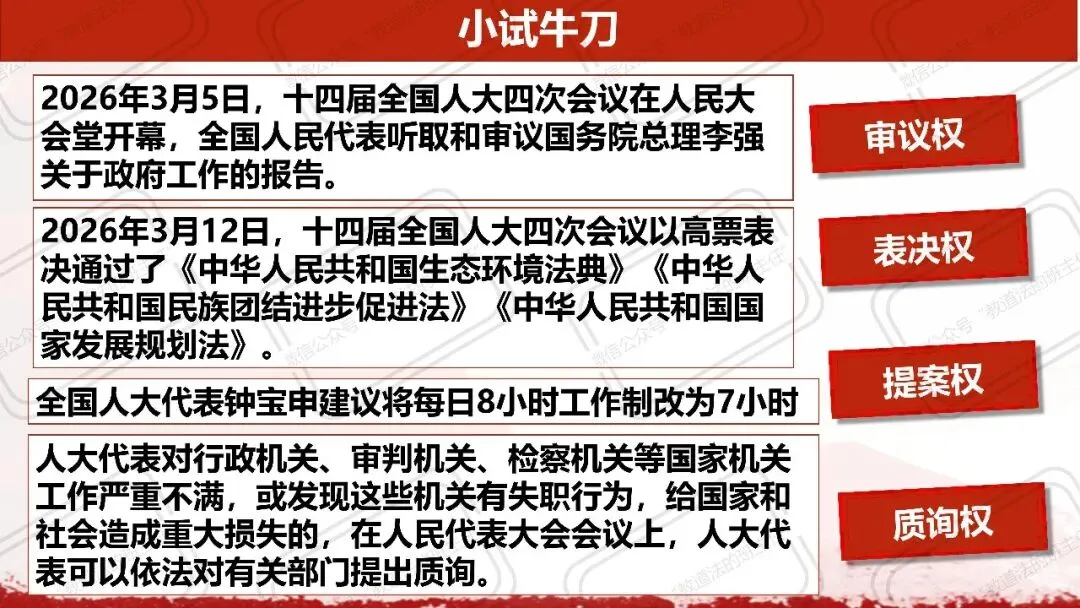 2.2026年3月4日,来自全国各地的人大代表汇聚北京,参加十四届全国人大四次会议,代表人民管理国家,围绕政治、经济、文化、社会与生态文明等建言献策,共商国是。这表明( )