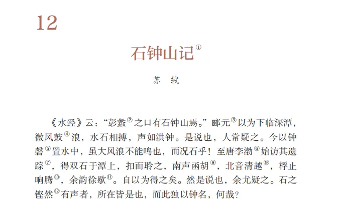 今天我们要学习一篇课文,清代方苞说它是苏轼“诸记中特出者”,刘大櫆也认为它是“坡公第一首记文”,它就是苏轼的《石钟山记》。