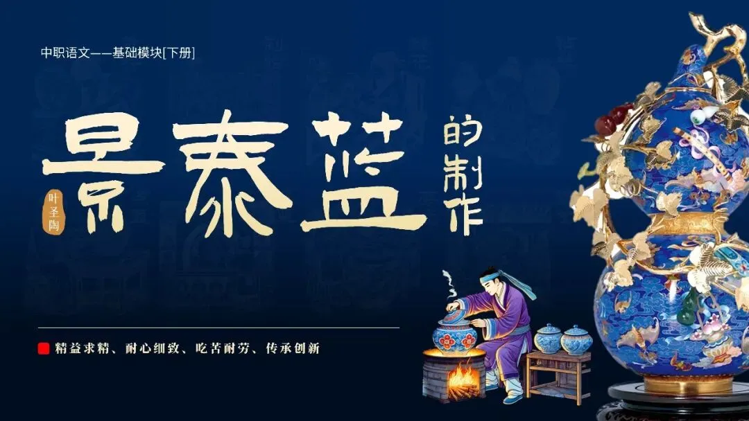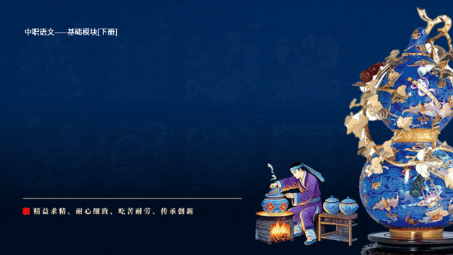 本期更新的课件为统编高教社版中职语文基础模块下册第五单元《景泰蓝的制作》,共42页。