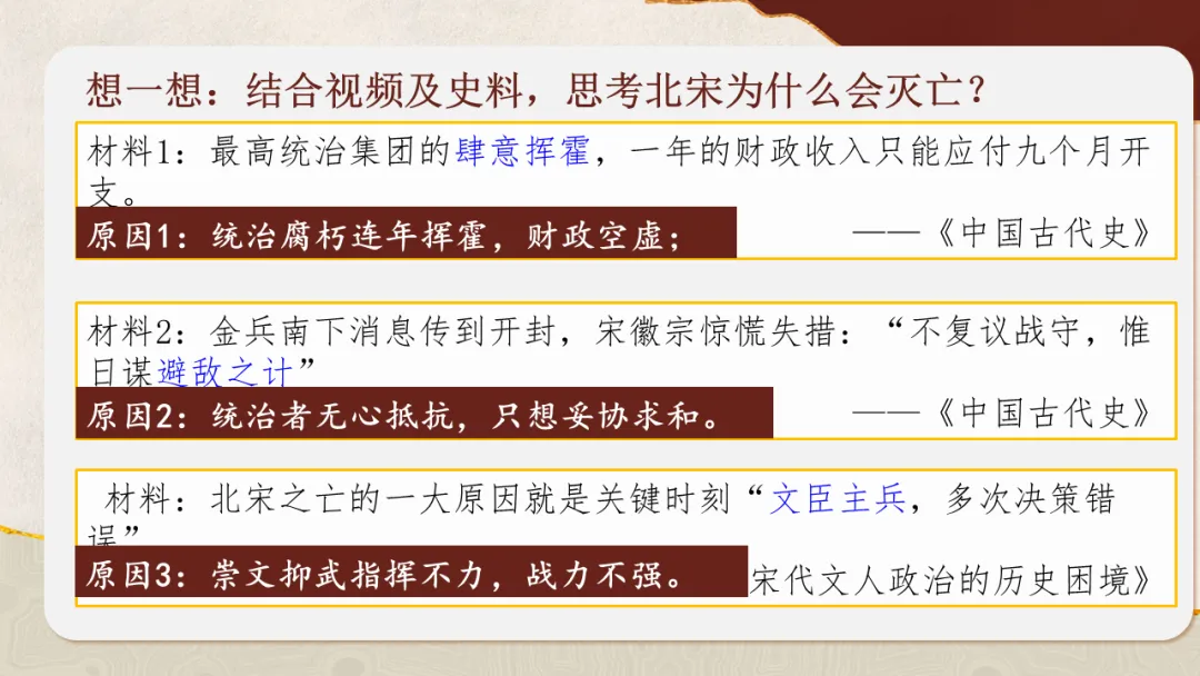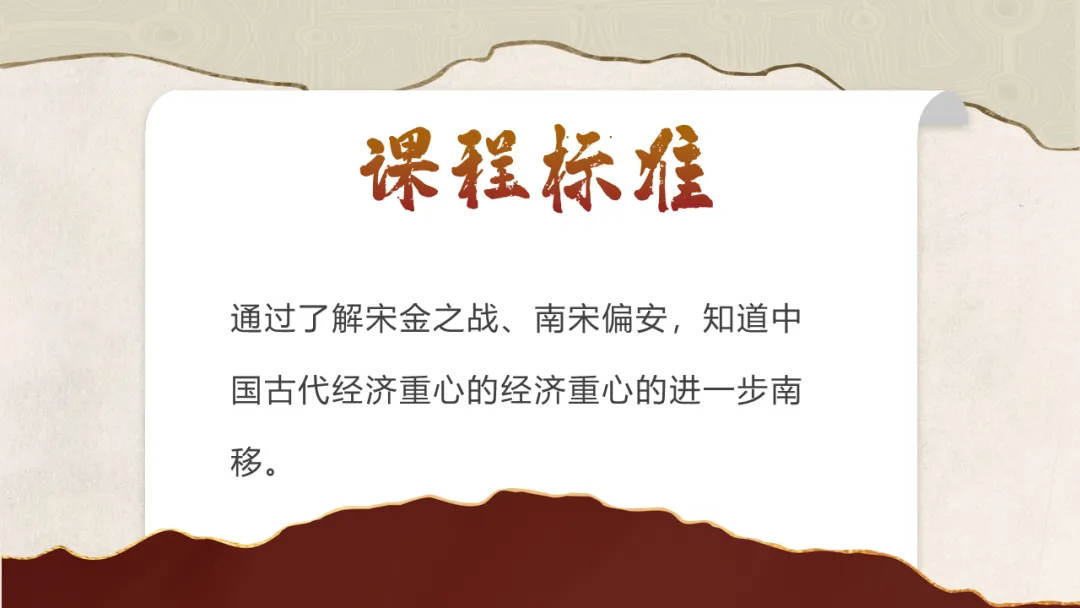 通过了解宋金之战、南宋偏安,知道中国古代经济重心的经济重心的进一步南移。