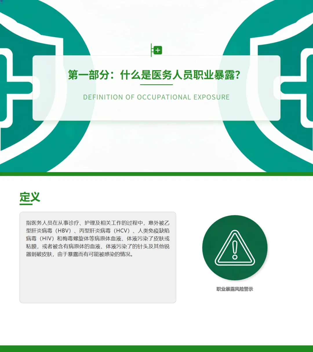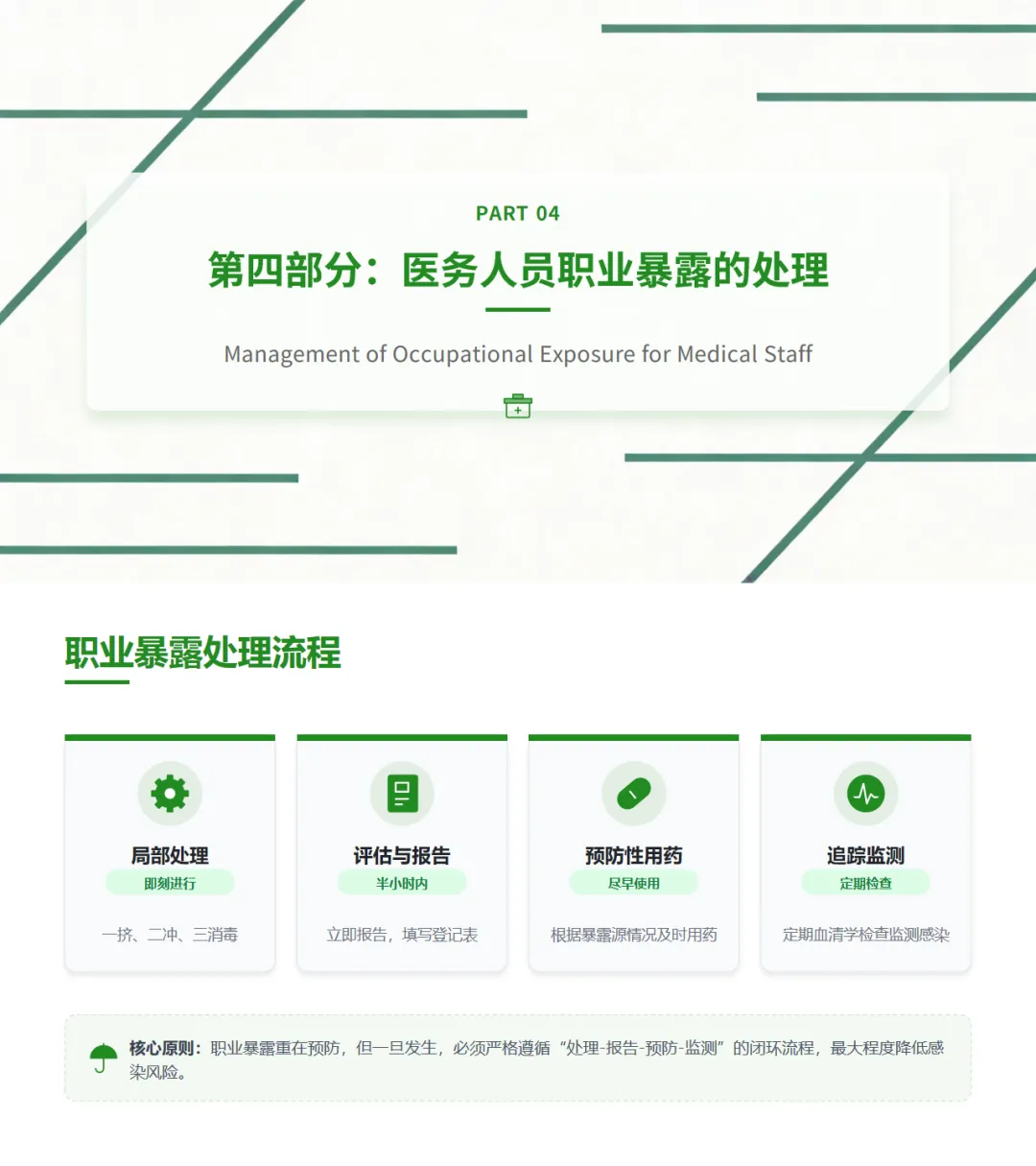 【PPT课件】医务人员职业暴露预防及处理全攻略(附详细 PPT 大纲与处理流程)