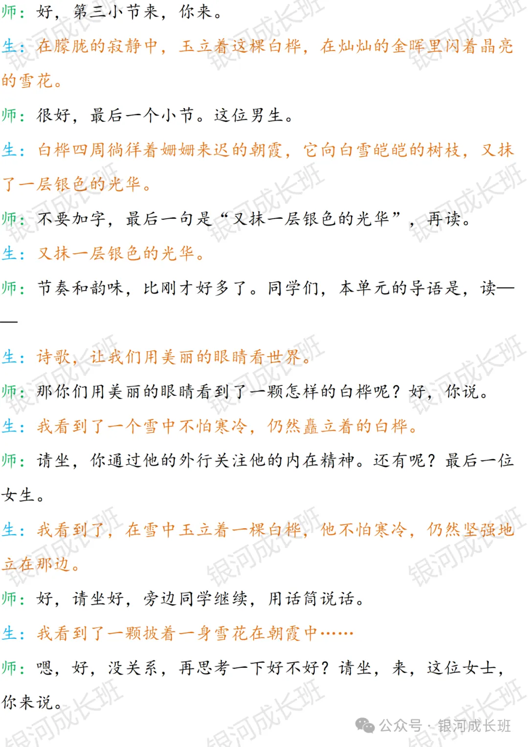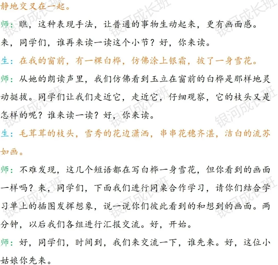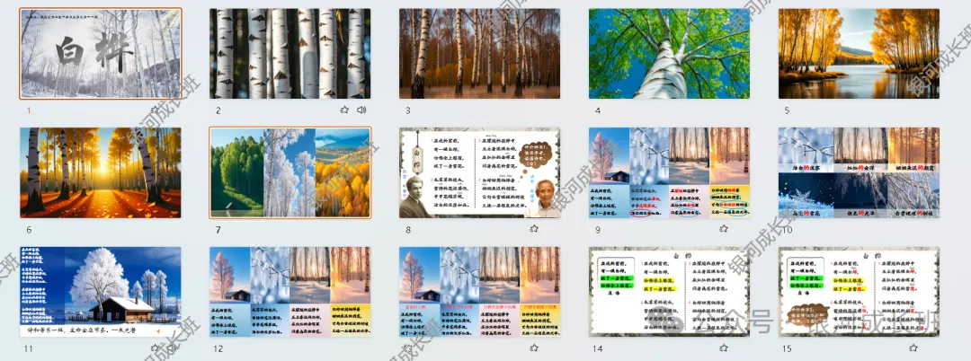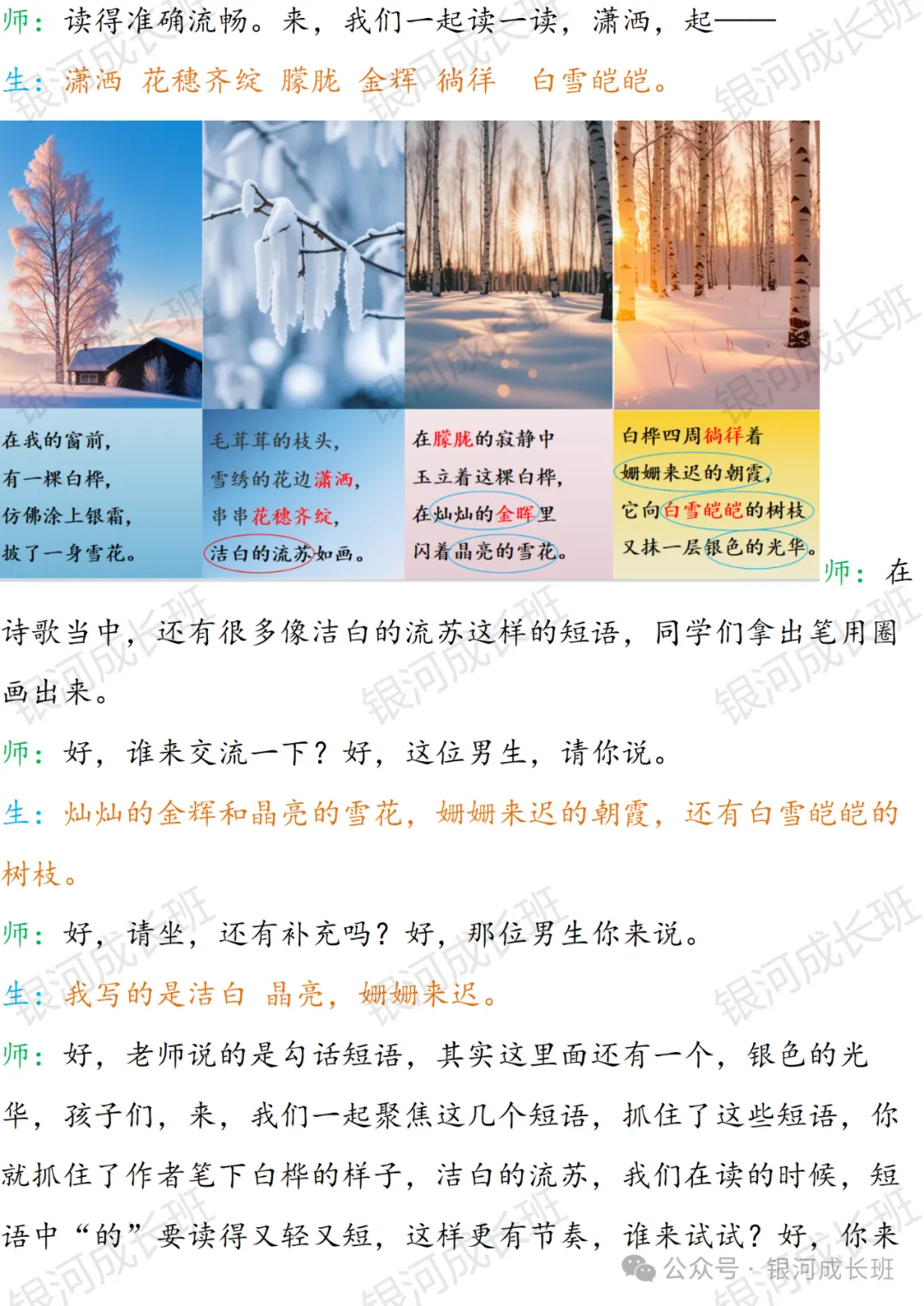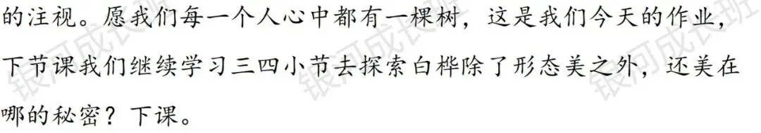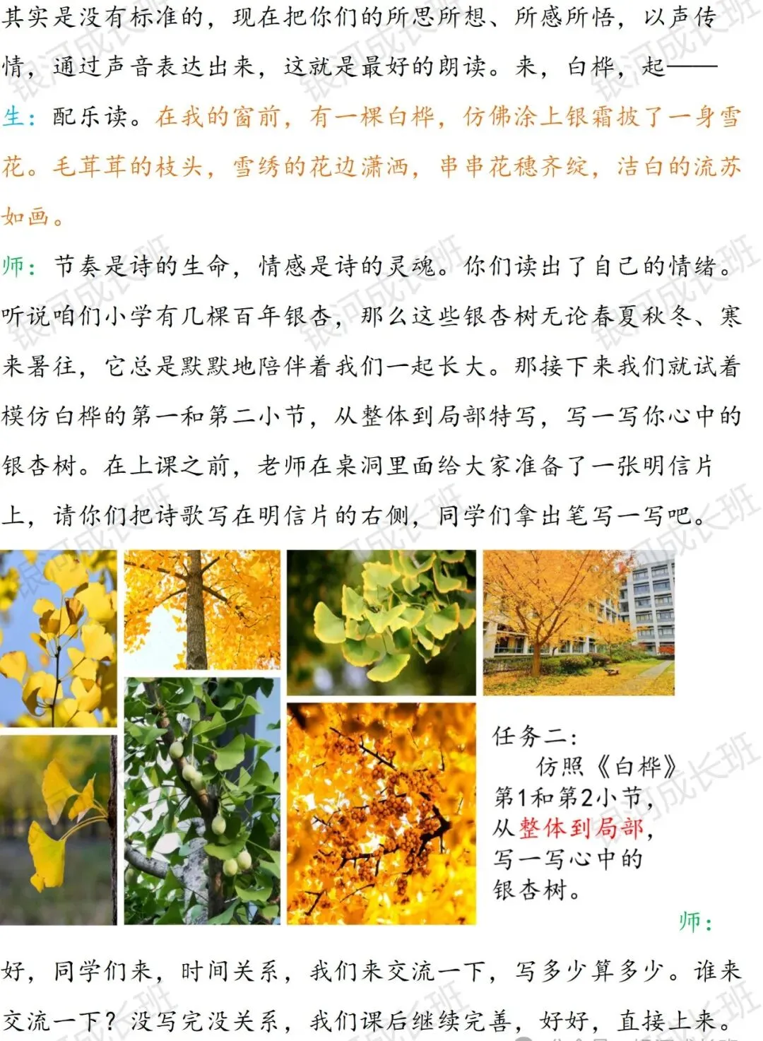 其实这节课很容易跨学科,比如可以结合科学课观察植物结构,美术课绘制“白桦四季图”,信息技术制作配乐朗诵视频,增强学习的综合性与趣味性。