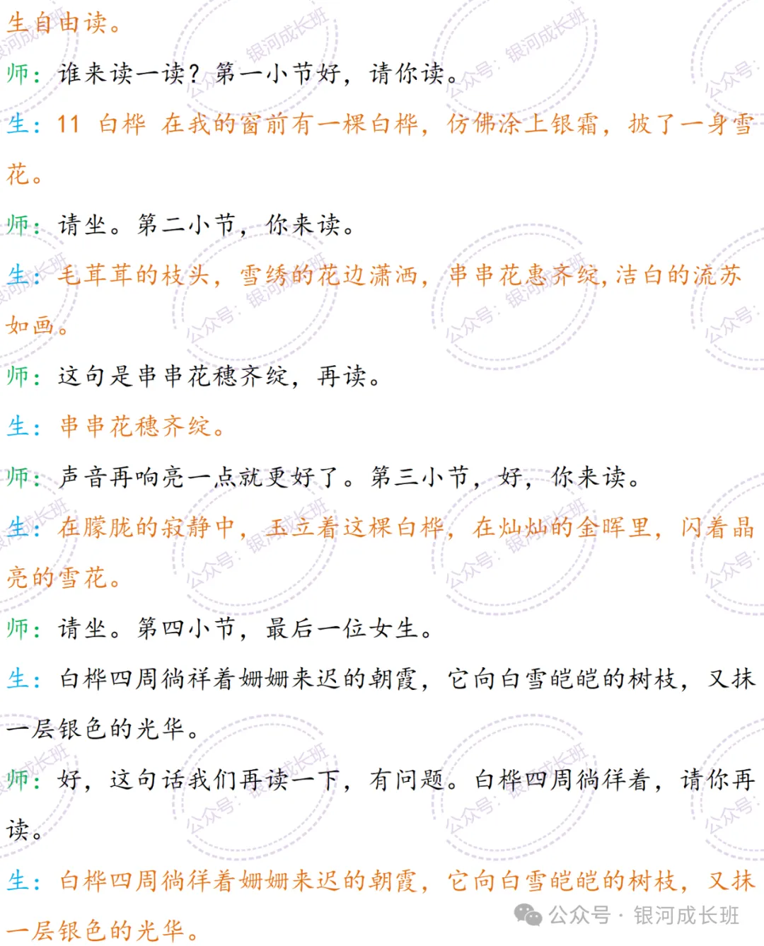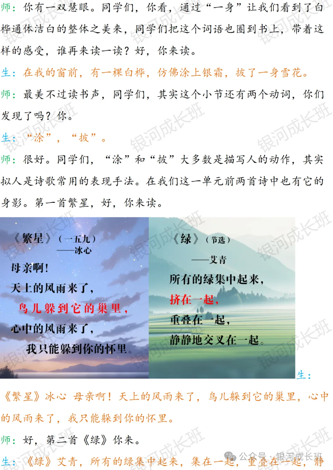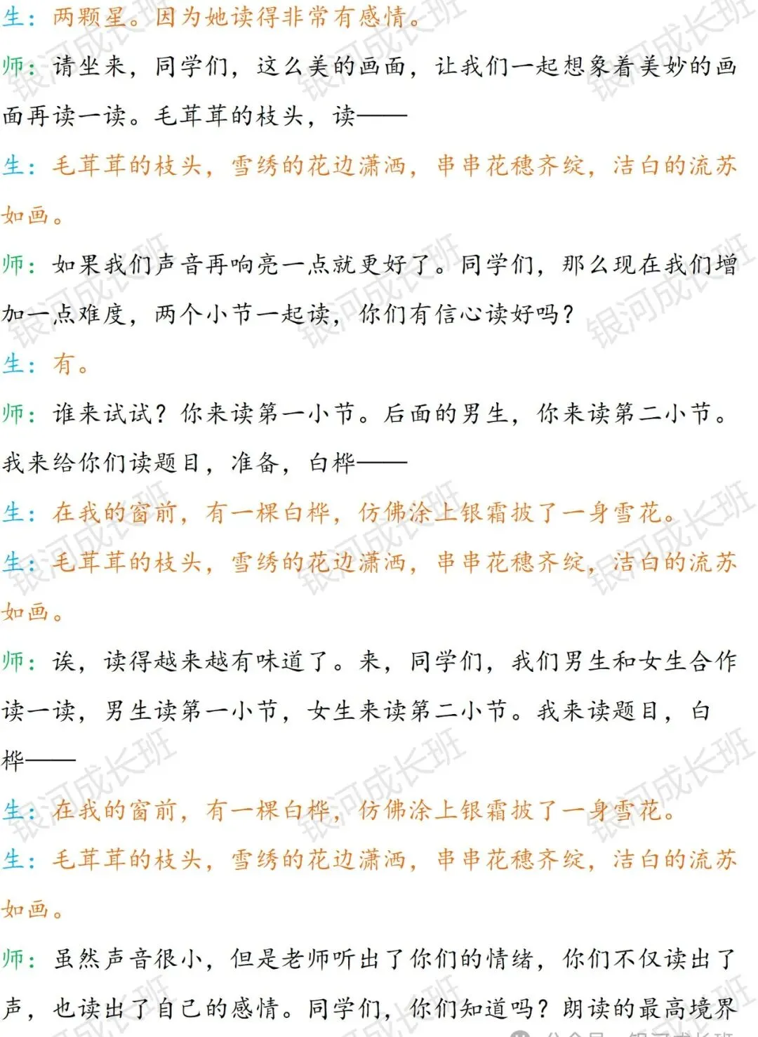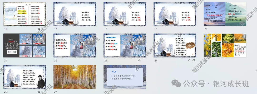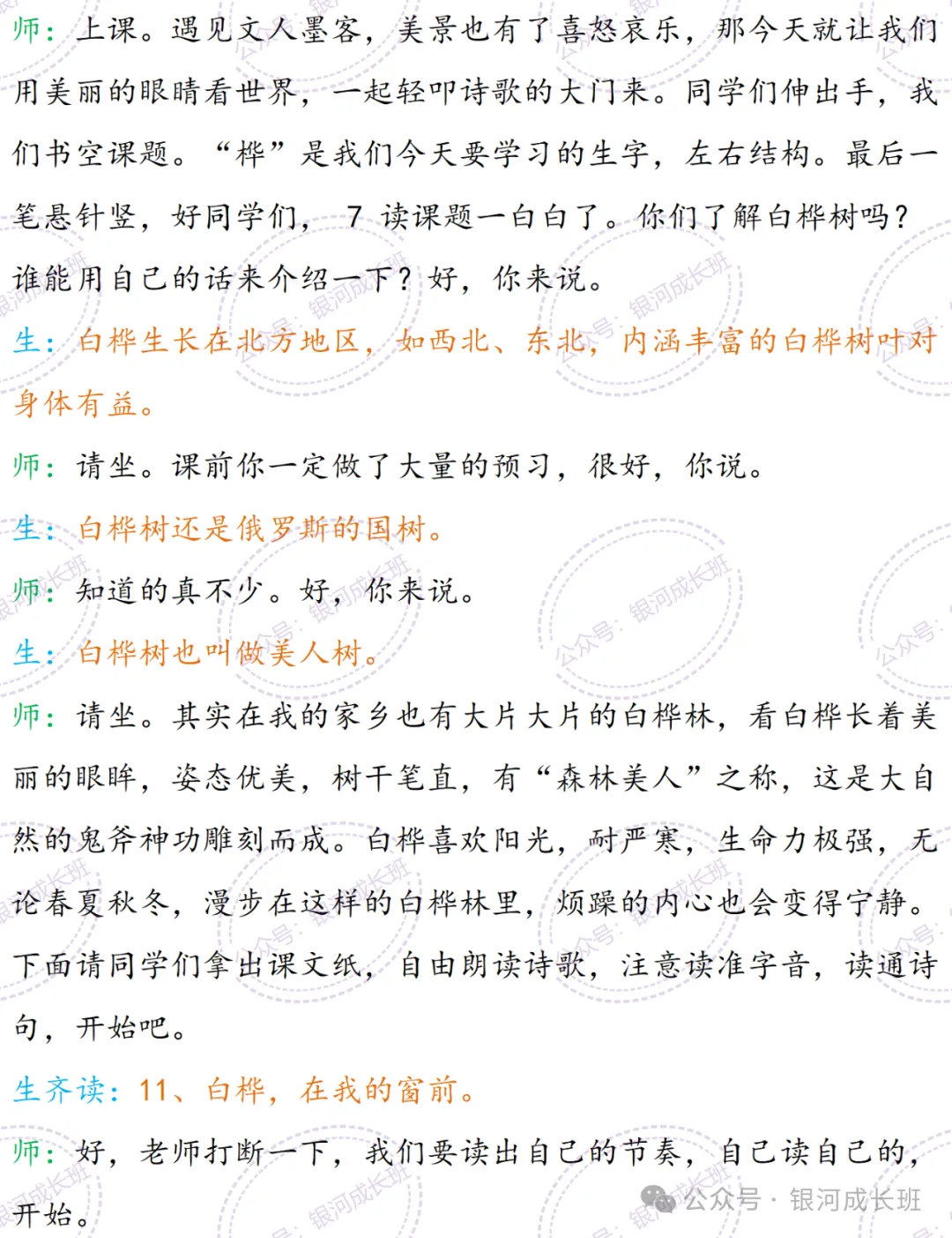 其实这节课很容易跨学科,比如可以结合科学课观察植物结构,美术课绘制“白桦四季图”,信息技术制作配乐朗诵视频,增强学习的综合性与趣味性。