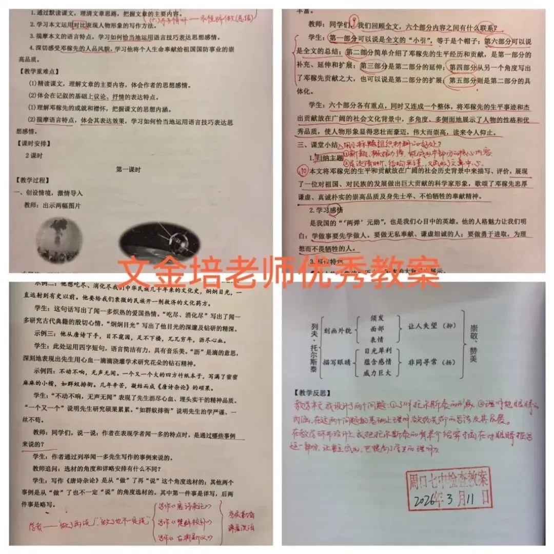 此次教案检查活动重点围绕:教学目标设定的合理性、教学环节的完整性、二次备课的深度、课后反思的真实性以及教学进度的匹配度等方面展开。