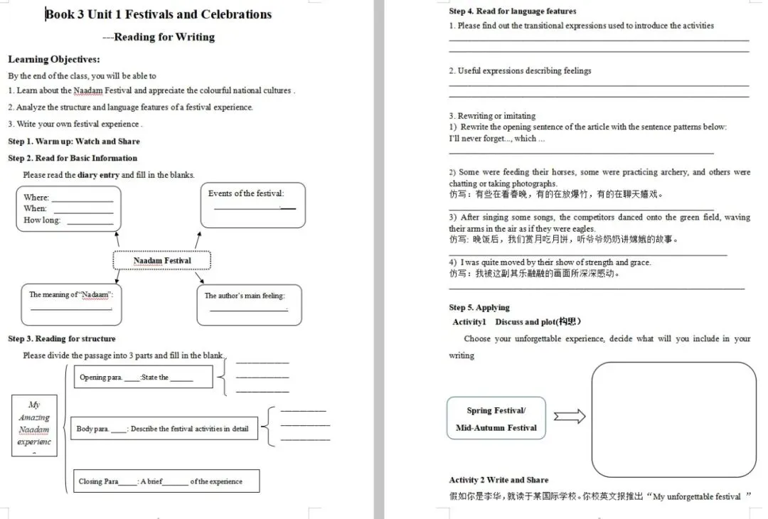 必修三 Unit 4 Reading and Thinking