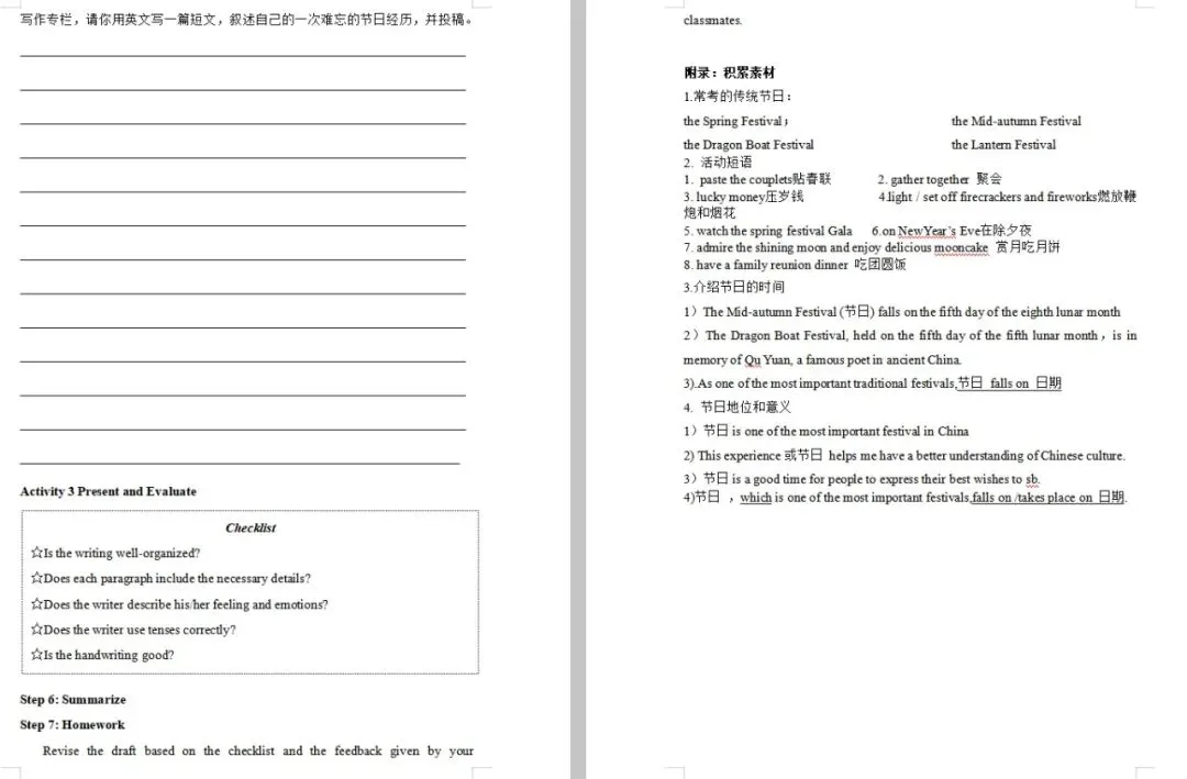 必修三 Unit 1 Reading for Writin