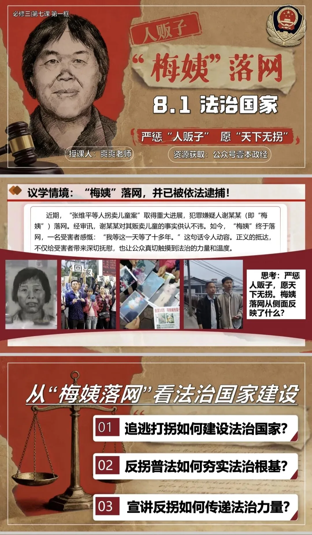 >优质课课件|2026高中政治必修三8.1法治国家课件PPT+教学设计(从“梅姨”落网看我国法治国家建设,2026年最新)